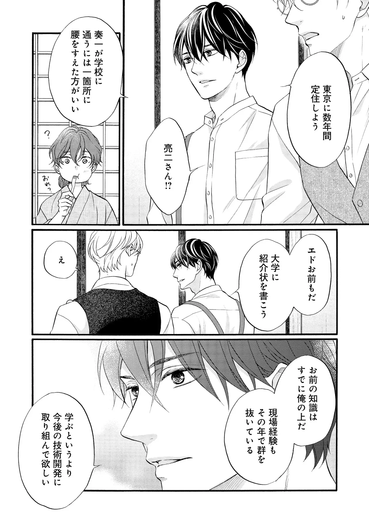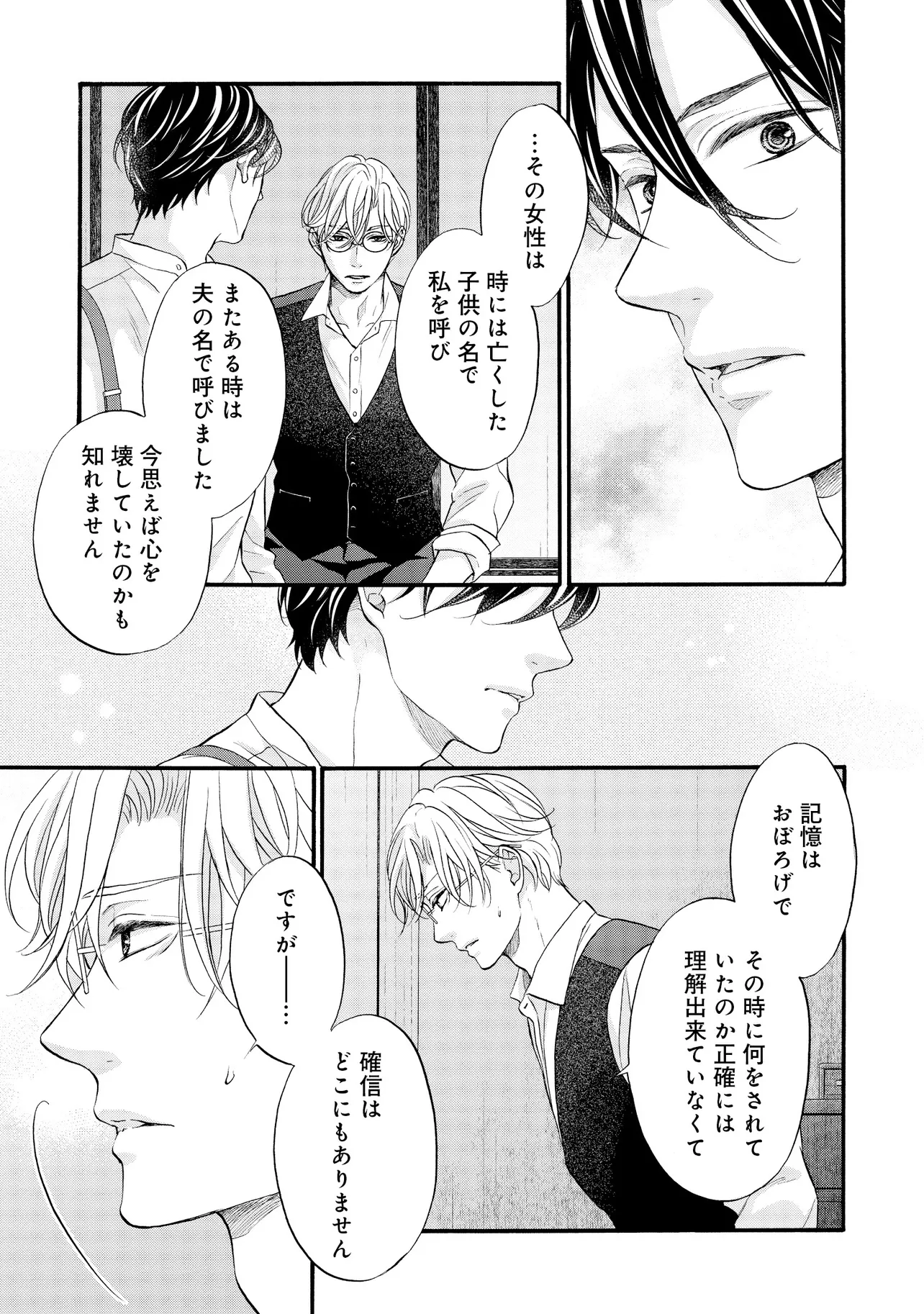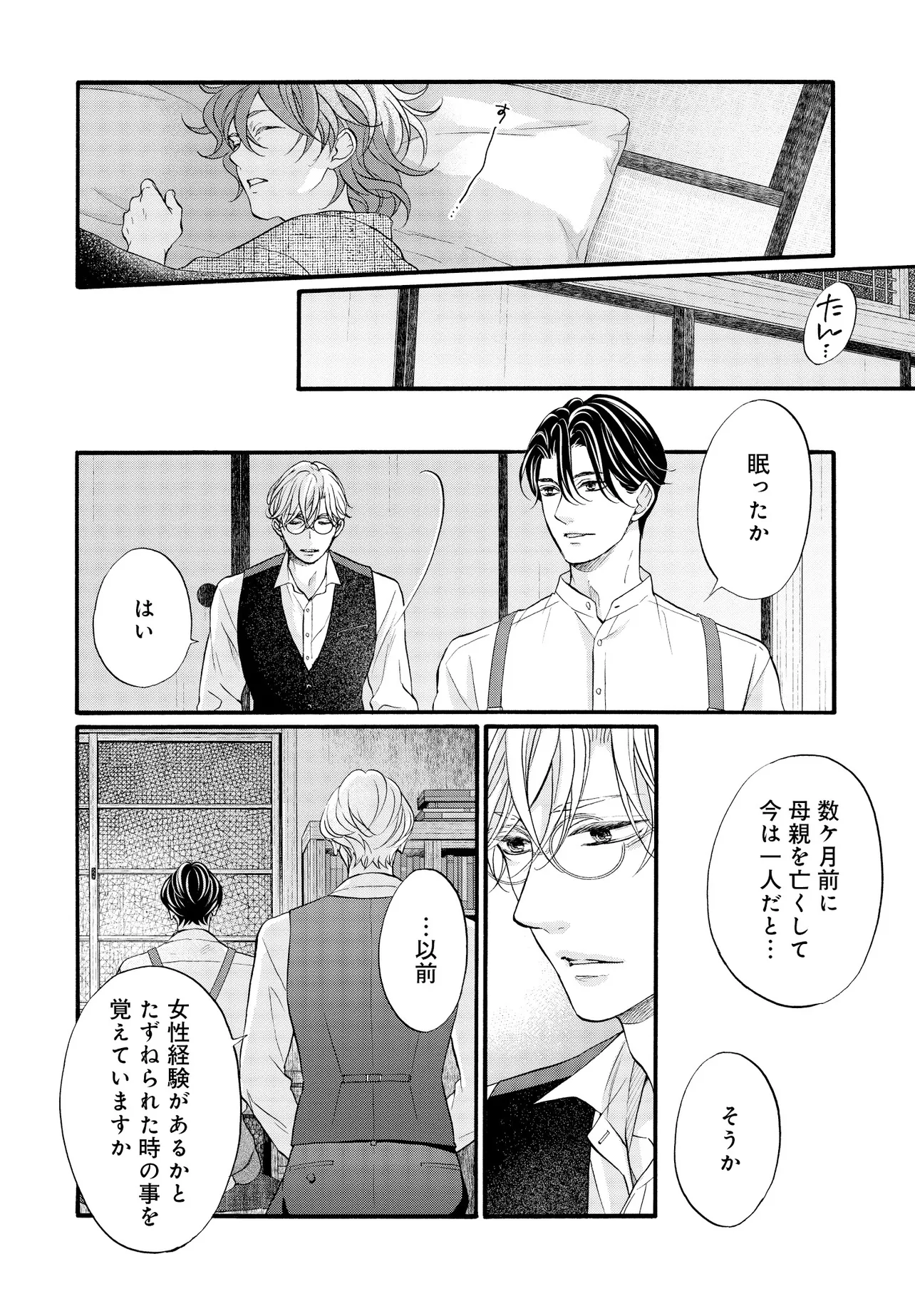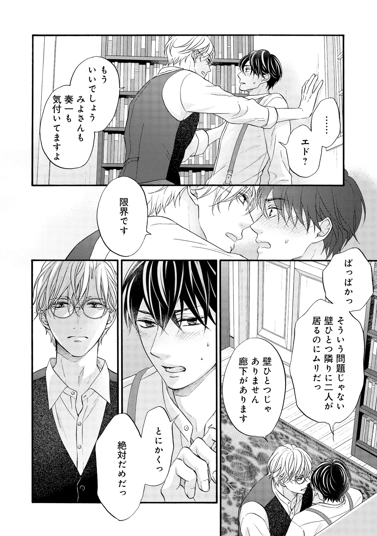 明治従属タングステン 帰国編(1) 明治従属タングステン 投稿者 admin - 2年 前に 幸せな読書漫画 明治従属タングステン 帰国編(1) , いいねと共有ボタンをクリックすることを忘れないでください. Manga 明治従属タングステン 常に更新されます 無料コミック Comic Top. 他のマンガの更新を読むことを忘れないでください。 マンガコレクションのリスト 無料コミック Comic Top マンガリストメニューにあります. お友達と共有しましょう! Facebook Twitter Pinterest Whatsapp 前のエピソード すべての章 次のエピソード リスト ページング Loading.. 前のエピソード すべての章 次のエピソード リスト ページング お友達と共有しましょう! Facebook Twitter Pinterest Whatsapp お気に入りに追加に続く 0 人 明治従属タングステン ――明治末期。 日露戦争後の電力需要の拡大を受け、欧州帰りの佐伯亮二は、 地方の水力発電所の計画技師として参画し、忙しい毎日を送っていた。 彼の傍らに居るのは、忠実な助手・エドワード。 2年前に、“言葉も話せぬ阿呆の人夫”として働いているのを見つけ、 世話してやったのが始まりだった。 二人の主従関係は、少しずつ変化を見せていて――…。 たつもとみお(著者) 20代受け20代攻めBLforgirlsゲイ受けトラウマノンケ攻めメガネ攻め下剋上主従外国人攻め幕末から昭和モノ料理ができる攻め男の子の事情男前受け硬派受け黒髪受け