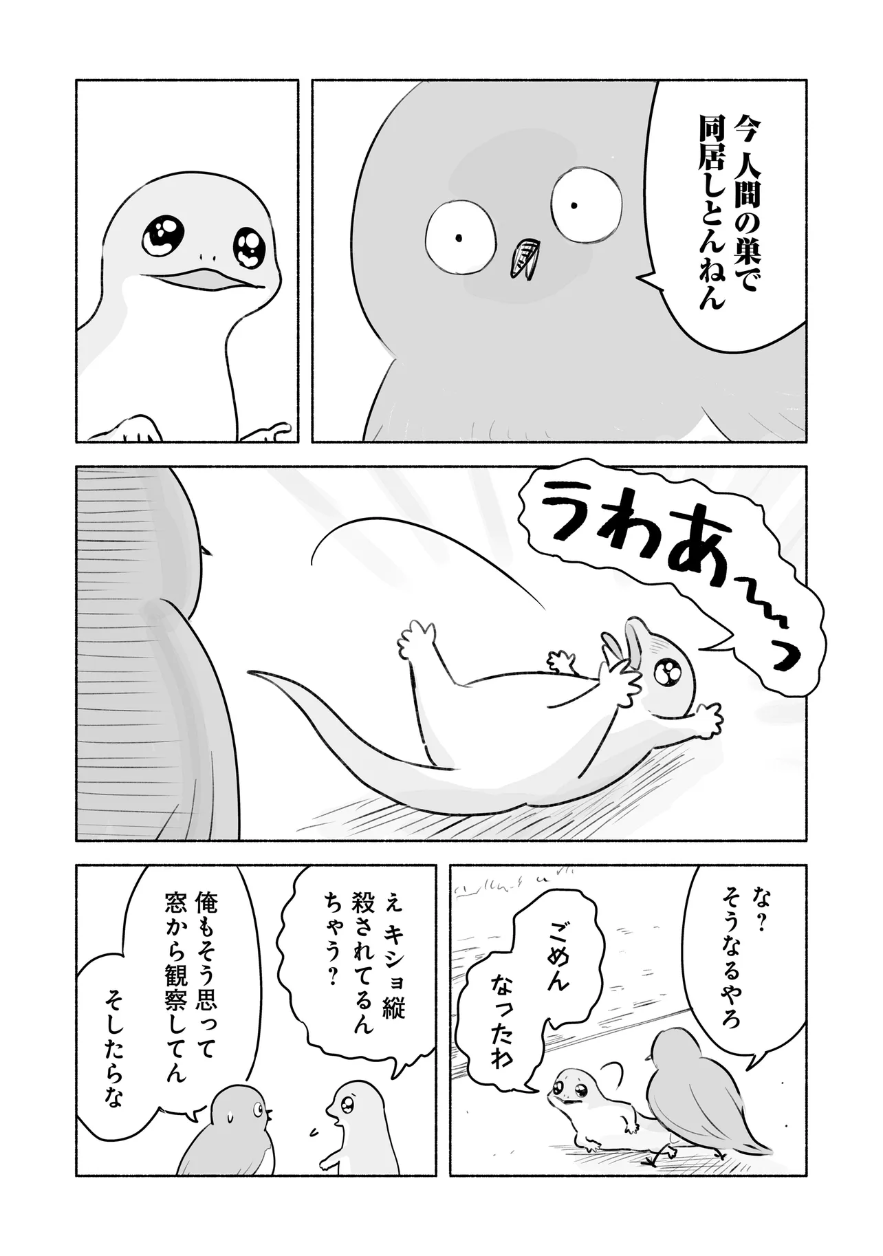 めじとやも 第7話 めじとやも 投稿者 admin - 5か月 前に 幸せな読書漫画 めじとやも 第7話 , いいねと共有ボタンをクリックすることを忘れないでください. Manga めじとやも 常に更新されます 無料コミック Comic Top. 他のマンガの更新を読むことを忘れないでください。 マンガコレクションのリスト 無料コミック Comic Top マンガリストメニューにあります. お友達と共有しましょう! Facebook Twitter Pinterest Whatsapp 前のエピソード すべての章 次のエピソード リスト ページング Loading.. 前のエピソード すべての章 次のエピソード リスト ページング お友達と共有しましょう! Facebook Twitter Pinterest Whatsapp お気に入りに追加に続く 1 人 めじとやも 田舎で暮らすメジとヤモは、 近所をうろつく天敵・ネコの観察に余念がない。 最近は、人間とネコの交流が気になリ、モノマネしてみたり近づいて瀕死で逃げてみたり。 今日も2匹は、他の生き物たちに思いを馳せながら、 軽快におしゃべりを繰り広げる。 しけたいぬ ショートスローライフほのぼの動物友情・仲間日常系猫笑える