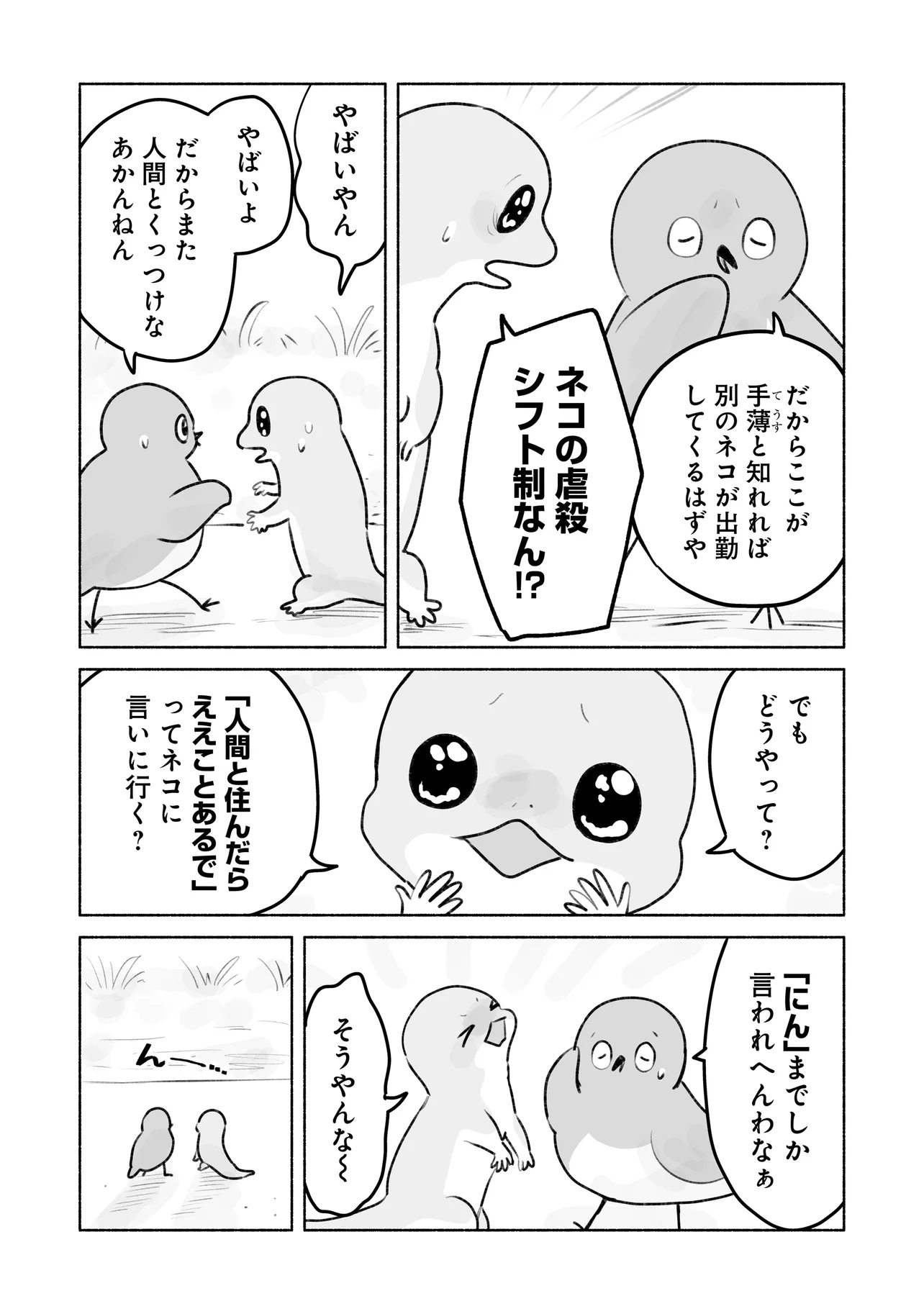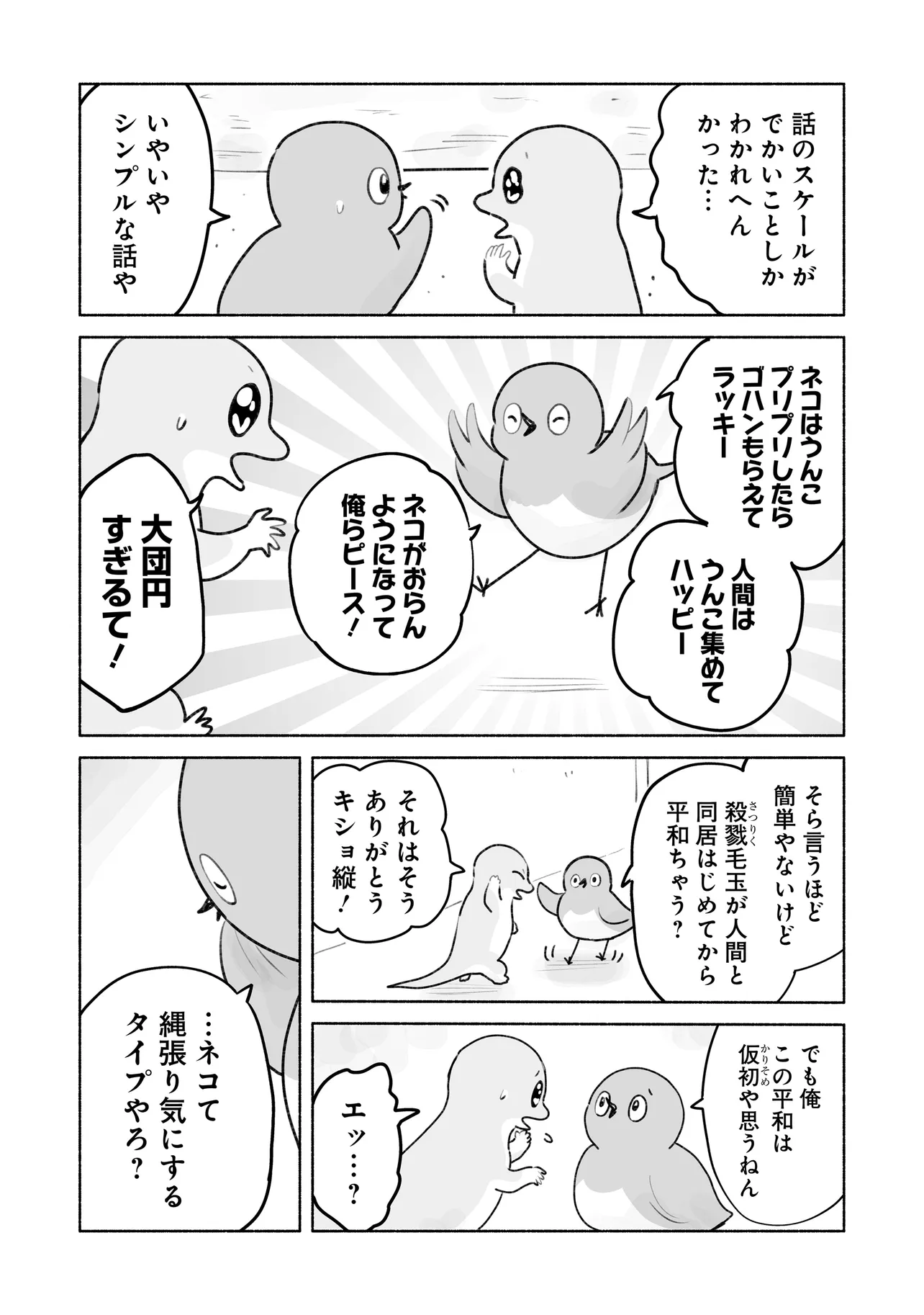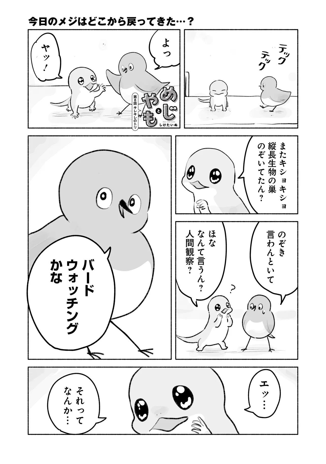 めじとやも 第8話 めじとやも 投稿者 admin - 5か月 前に 幸せな読書漫画 めじとやも 第8話 , いいねと共有ボタンをクリックすることを忘れないでください. Manga めじとやも 常に更新されます 無料コミック Comic Top. 他のマンガの更新を読むことを忘れないでください。 マンガコレクションのリスト 無料コミック Comic Top マンガリストメニューにあります. お友達と共有しましょう! Facebook Twitter Pinterest Whatsapp 前のエピソード すべての章 次のエピソード リスト ページング Loading.. 前のエピソード すべての章 次のエピソード リスト ページング お友達と共有しましょう! Facebook Twitter Pinterest Whatsapp お気に入りに追加に続く 1 人 めじとやも 田舎で暮らすメジとヤモは、 近所をうろつく天敵・ネコの観察に余念がない。 最近は、人間とネコの交流が気になリ、モノマネしてみたり近づいて瀕死で逃げてみたり。 今日も2匹は、他の生き物たちに思いを馳せながら、 軽快におしゃべりを繰り広げる。 しけたいぬ ショートスローライフほのぼの動物友情・仲間日常系猫笑える