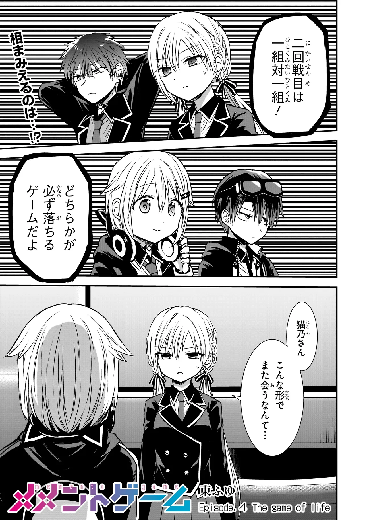 メメントゲーム 第4話 メメントゲーム 投稿者 admin - 1年 前に 幸せな読書漫画 メメントゲーム 第4話 , いいねと共有ボタンをクリックすることを忘れないでください. Manga メメントゲーム 常に更新されます 無料コミック Comic Top. 他のマンガの更新を読むことを忘れないでください。 マンガコレクションのリスト 無料コミック Comic Top マンガリストメニューにあります. お友達と共有しましょう! Facebook Twitter Pinterest Whatsapp 前のエピソード すべての章 次のエピソード リスト ページング Loading.. 前のエピソード すべての章 次のエピソード リスト ページング お友達と共有しましょう! Facebook Twitter Pinterest Whatsapp お気に入りに追加に続く 0 人 メメントゲーム エリート校の夕凪学園の落ちこぼれ・東雲夕夜。そんな彼と同じくぼっちでありながら、学年成績トップの日嗣アカリ。真逆でありながらどこか似た者同士な二人は、突然学園の地下深くに落ちていき、夕凪学園の裏側の世界・終夜学園のゲームに巻き込まれていく!!永遠に続く夜の学園にて二人一組で行われるゲームの報酬は、この世界の謎、そして彼ら自身の過去の記憶!!果たして彼らはこの世界に真実に辿り着くことができるのか――!?“記憶”と“信頼関係”が鍵となる、サバイバルゲーム学園サスペンス!! 東ふゆ カッコいいシリアススカッとするドキドキハラハラドラマ友情・仲間学園モノ成り上がり現代美少女