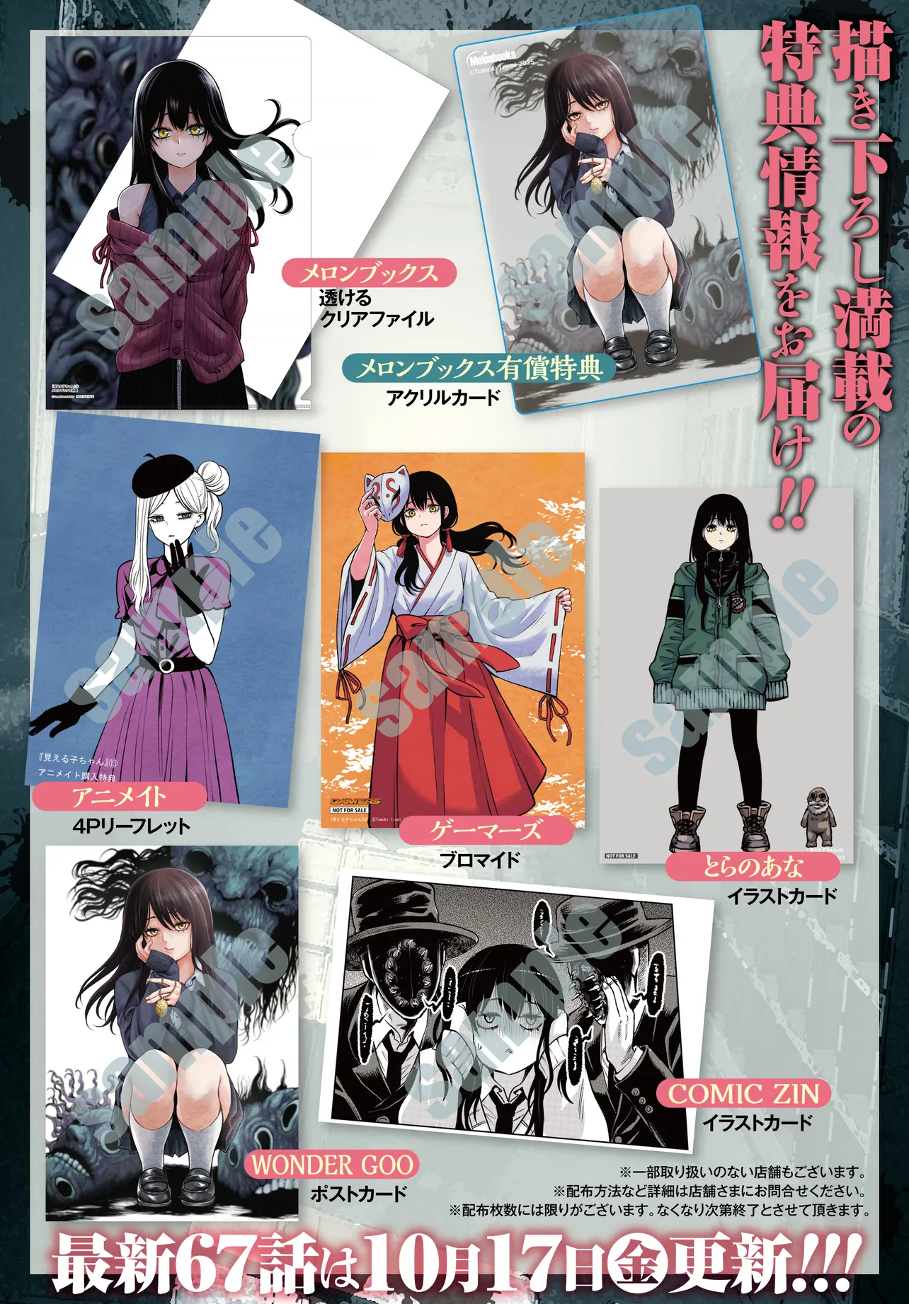 見える子ちゃん コミックス第13巻情報! 見える子ちゃん 投稿者 admin - 2か月 前に 幸せな読書漫画 見える子ちゃん コミックス第13巻情報! , いいねと共有ボタンをクリックすることを忘れないでください. Manga 見える子ちゃん 常に更新されます 無料コミック Comic Top. 他のマンガの更新を読むことを忘れないでください。 マンガコレクションのリスト 無料コミック Comic Top マンガリストメニューにあります. お友達と共有しましょう! Facebook Twitter Pinterest Whatsapp 前のエピソード すべての章 次のエピソード リスト ページング Loading.. 前のエピソード すべての章 次のエピソード リスト ページング お友達と共有しましょう! Facebook Twitter Pinterest Whatsapp お気に入りに追加に続く 12 人 見える子ちゃん ある日突然、普通の人には見えない異形な“ヤバい”やつらの姿が見えるようになってしまった女の子。彼女は、彼らから逃げるでもなく、立ち向かうでもなく……、精一杯シカトしつづける事に。前代未聞のホラーギャグ漫画が遂にComicTop&ニコニコ漫画に登場!! 泉朝樹(著者) apantaコミックウォーカーオリジナルコメディホラー・オカルト女子高校生(JK)美少女