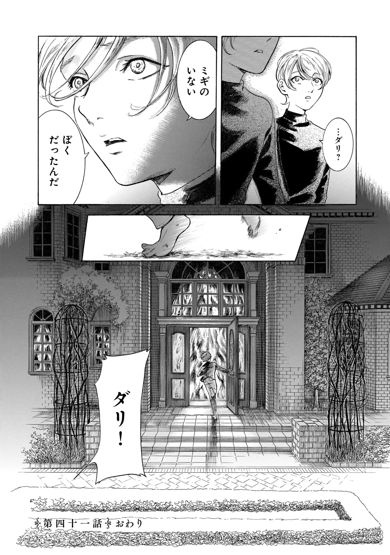 ミギとダリ 第四十一話 鳥の中の鳥 ミギとダリ 投稿者 admin - 6か月 前に 幸せな読書漫画 ミギとダリ 第四十一話 鳥の中の鳥 , いいねと共有ボタンをクリックすることを忘れないでください. Manga ミギとダリ 常に更新されます 無料コミック Comic Top. 他のマンガの更新を読むことを忘れないでください。 マンガコレクションのリスト 無料コミック Comic Top マンガリストメニューにあります. お友達と共有しましょう! Facebook Twitter Pinterest Whatsapp 前のエピソード すべての章 次のエピソード リスト ページング Loading.. 前のエピソード すべての章 次のエピソード リスト ページング お友達と共有しましょう! Facebook Twitter Pinterest Whatsapp お気に入りに追加に続く 0 人 ミギとダリ 『坂本ですが?』の佐野菜見が描くミステリアスな悪童の物語。 舞台は、1990年神戸市北区。 アメリカの郊外をモデルに造られたニュータウン、オリゴン村。 裕福な住民が暮らすこの町に、“ひとりの”少年が養子としてやってくる。 少年の名は秘鳥(ひとり)。 美しく聡明な少年・秘鳥に、園山夫婦は魅了されるが、 秘鳥には、大きな秘密と恐るべき目的があった――。 佐野菜見(著者) ギャグ美少年