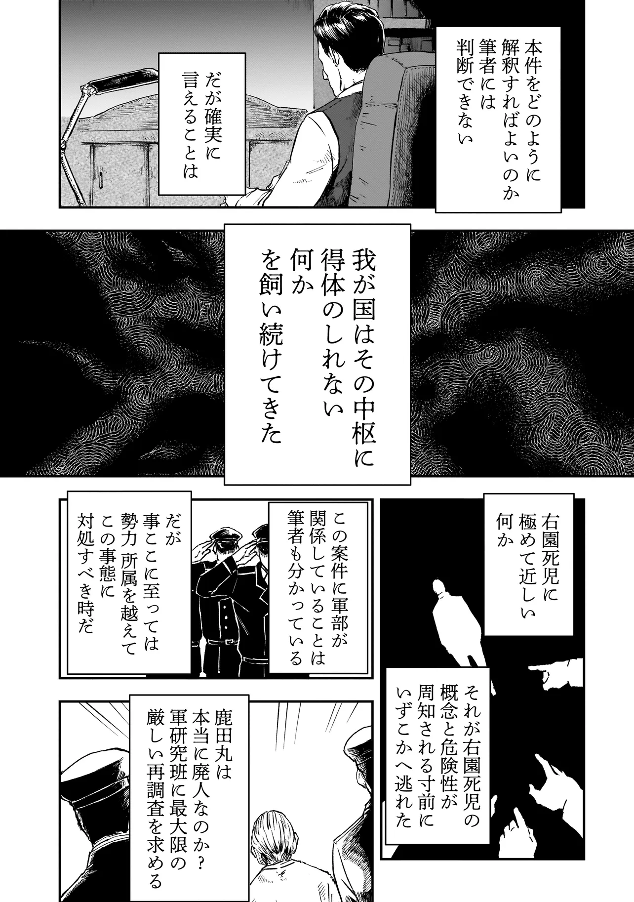 右園死児報告 秘密報告 右園死児報告 投稿者 admin - 6か月 前に 幸せな読書漫画 右園死児報告 秘密報告 , いいねと共有ボタンをクリックすることを忘れないでください. Manga 右園死児報告 常に更新されます 無料コミック Comic Top. 他のマンガの更新を読むことを忘れないでください。 マンガコレクションのリスト 無料コミック Comic Top マンガリストメニューにあります. お友達と共有しましょう! Facebook Twitter Pinterest Whatsapp 前のエピソード すべての章 次のエピソード リスト ページング Loading.. 前のエピソード すべての章 次のエピソード リスト ページング お友達と共有しましょう! Facebook Twitter Pinterest Whatsapp お気に入りに追加に続く 3 人 右園死児報告 人間、動物、その他無機物の名称となった時に災害を誘引する右園死児。 規格外の現象の発端となるため、右園死児の文字列が含まれるすべてが禁忌扱いされている。 本書は、その原理の解明と対策を目的に発足した、明治二十五年から続く政府、軍、捜査機関、探偵、一般人による非公式調査報告体系である。 かかし朝浩新川権兵衛真島文吉 WEB小説コミカライズショートシリアスダークディストピアファミ通文庫大人向け裏社会・アングラ