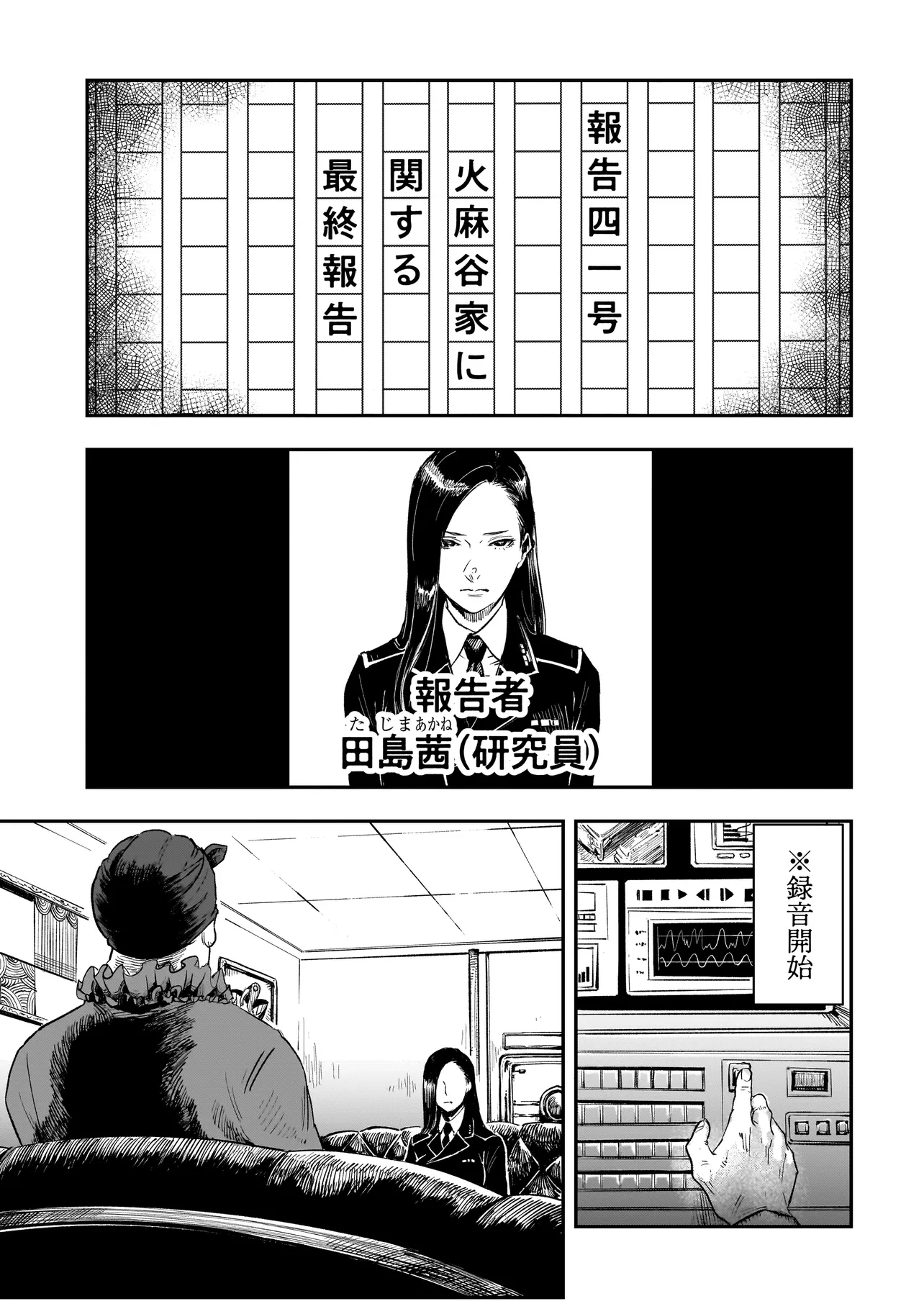 右園死児報告 報告四一号 右園死児報告 投稿者 admin - 2か月 前に 幸せな読書漫画 右園死児報告 報告四一号 , いいねと共有ボタンをクリックすることを忘れないでください. Manga 右園死児報告 常に更新されます 無料コミック Comic Top. 他のマンガの更新を読むことを忘れないでください。 マンガコレクションのリスト 無料コミック Comic Top マンガリストメニューにあります. お友達と共有しましょう! Facebook Twitter Pinterest Whatsapp 前のエピソード すべての章 次のエピソード リスト ページング Loading.. 前のエピソード すべての章 次のエピソード リスト ページング お友達と共有しましょう! Facebook Twitter Pinterest Whatsapp お気に入りに追加に続く 3 人 右園死児報告 人間、動物、その他無機物の名称となった時に災害を誘引する右園死児。 規格外の現象の発端となるため、右園死児の文字列が含まれるすべてが禁忌扱いされている。 本書は、その原理の解明と対策を目的に発足した、明治二十五年から続く政府、軍、捜査機関、探偵、一般人による非公式調査報告体系である。 かかし朝浩新川権兵衛真島文吉 WEB小説コミカライズショートシリアスダークディストピアファミ通文庫大人向け裏社会・アングラ