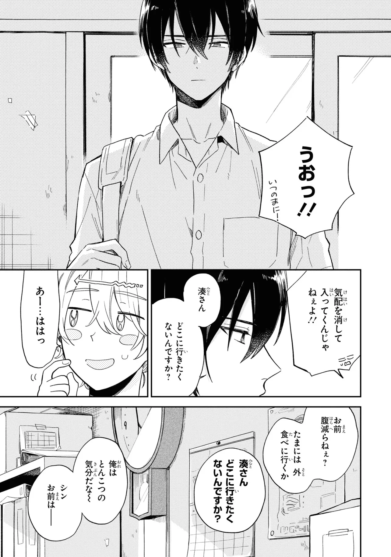 イケメン高校生×アラサーのコインランドリー管理人。ゆるキュンBL! エアコンの設備もない古びたお店「みなと商事コインランドリー」を祖父から継いだ湊晃(みなとあきら)。 アラサーで元社畜の晃は地元に愛される店をのんびりと営んでいた。 ある日高校生の香月慎太郎(かつきしんたろう)が客として来店する。 歳の差を越えて仲良くなるふたりだったが、 晃がゲイであることがふとしたことから慎太郎にバレてしまい…? pixivランキング1位!! 大人気コインランドリーBL(ボーイズライフ)ついに発売!!