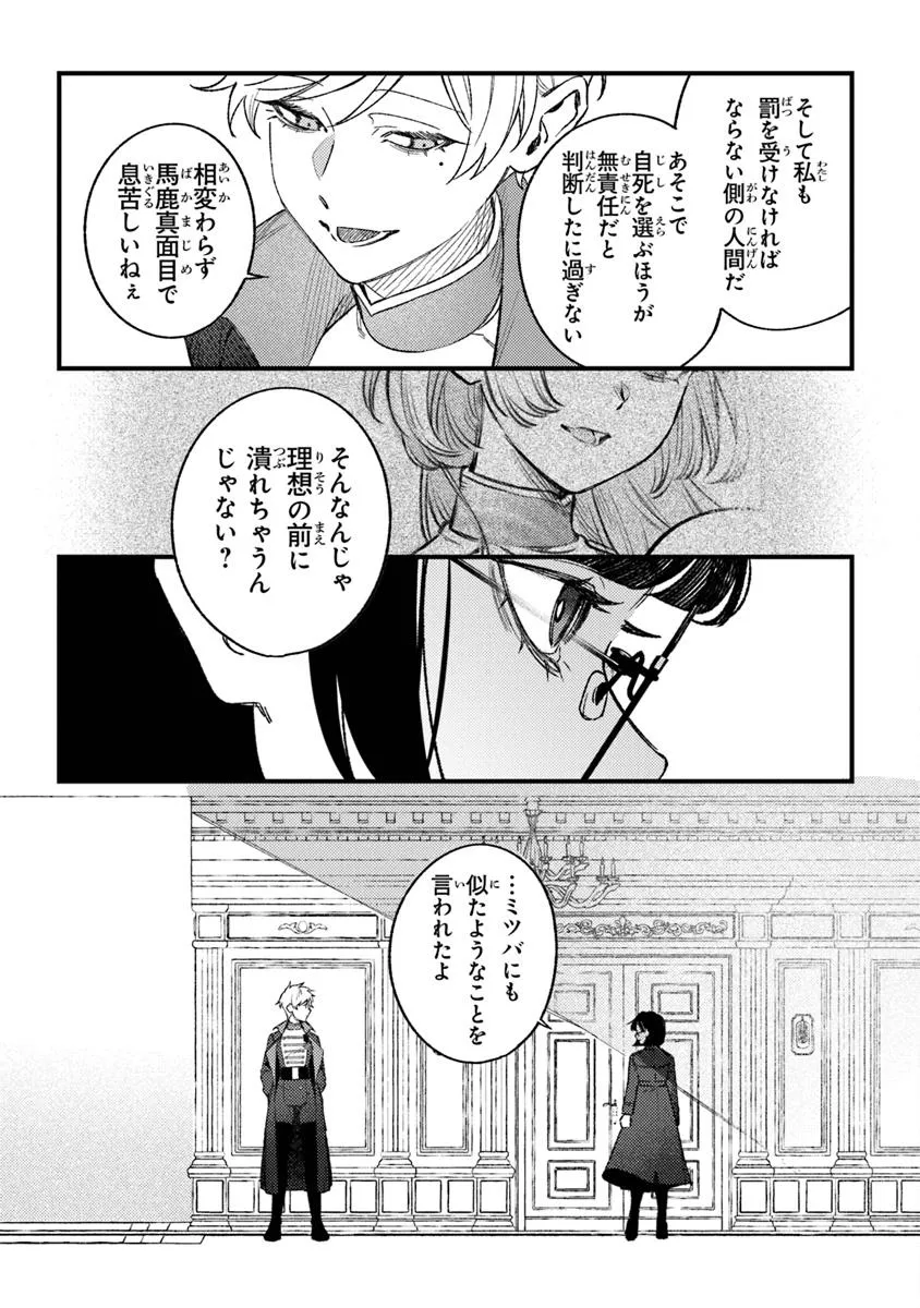 ”死”を纏うミツバを恐れた継母は、ミツバから貴族性を取り上げ士官学校へと入学させる。