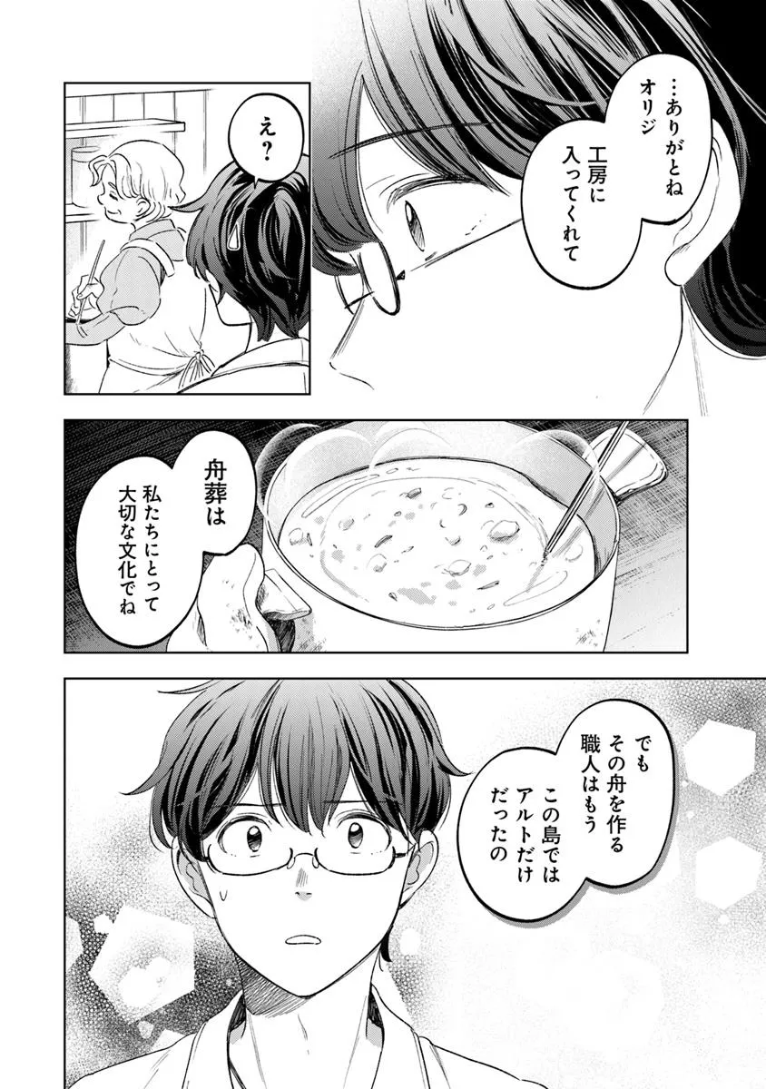 モンガータの旅人よ 第2話「漁師の花舟」 モンガータの旅人よ 投稿者 admin - 1年 前に 幸せな読書漫画 モンガータの旅人よ 第2話「漁師の花舟」 , いいねと共有ボタンをクリックすることを忘れないでください. Manga モンガータの旅人よ 常に更新されます 無料コミック Comic Top. 他のマンガの更新を読むことを忘れないでください。 マンガコレクションのリスト 無料コミック Comic Top マンガリストメニューにあります. お友達と共有しましょう! Facebook Twitter Pinterest Whatsapp 前のエピソード すべての章 次のエピソード リスト ページング Loading.. 前のエピソード すべての章 次のエピソード リスト ページング お友達と共有しましょう! Facebook Twitter Pinterest Whatsapp お気に入りに追加に続く 1 人 モンガータの旅人よ 1965年、北大西洋・シュエルデン国ケンズ島。 両親を船の事故で亡くしたオリジは「死なない船をつくる」と決意し船大工を志すが、ひょんなことから、いまだ舟葬文化の残るこのケンズ島で葬送舟を作ることになる。死をお金にしていく葛藤に苦しむオリジに、相棒のアルトと”モンガータの旅人”が見せた景色とは——。 正反対の舟職人2人と島民たちが織りなす、切なくも心温まる物語。 野間与太郎 ドラマ切ない友情・仲間同居家族日常系生活・ライフスタイル社会考えさせられる