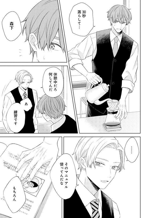 森下くんは有松さんに夢中です 第2話後編 森下くんは有松さんに夢中です 投稿者 admin - 2年 前に 幸せな読書漫画 森下くんは有松さんに夢中です 第2話後編 , いいねと共有ボタンをクリックすることを忘れないでください. Manga 森下くんは有松さんに夢中です 常に更新されます 無料コミック Comic Top. 他のマンガの更新を読むことを忘れないでください。 マンガコレクションのリスト 無料コミック Comic Top マンガリストメニューにあります. お友達と共有しましょう! Facebook Twitter Pinterest Whatsapp 前のエピソード すべての章 次のエピソード リスト ページング Loading.. 前のエピソード すべての章 次のエピソード リスト ページング お友達と共有しましょう! Facebook Twitter Pinterest Whatsapp お気に入りに追加に続く 3 人 森下くんは有松さんに夢中です 気ままな大学生・森下は、家近で高収入のバイトを見つけて早速応募する。 そこはこだわりのコーヒーをそろえるカフェ、マスターも他のバイトさんもいい人だと安心していたら社員の有松だけはやたらとあたりが厳しい…!? 負けん気に火が付いた森下は「見返してやる!」と、バリバリと仕事をこなしていく。 でも、ふと有松のコーヒーを淹れる姿に目を奪われると、その姿が忘れられなくて――…。 気ままなイケメン大学生、クールで厳しい社員さんに恋の予感!? 砂糖と塩(著者) BLforgirlsカフェノンケ攻め上司部下年下攻め男の子の事情