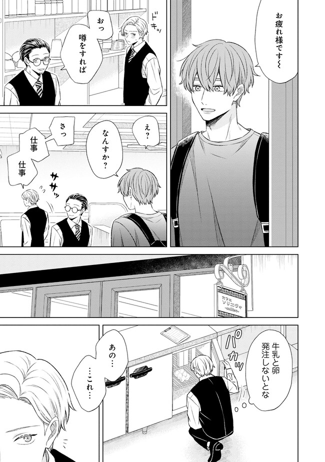 森下くんは有松さんに夢中です 第7話前編 森下くんは有松さんに夢中です 投稿者 admin - 2年 前に 幸せな読書漫画 森下くんは有松さんに夢中です 第7話前編 , いいねと共有ボタンをクリックすることを忘れないでください. Manga 森下くんは有松さんに夢中です 常に更新されます 無料コミック Comic Top. 他のマンガの更新を読むことを忘れないでください。 マンガコレクションのリスト 無料コミック Comic Top マンガリストメニューにあります. お友達と共有しましょう! Facebook Twitter Pinterest Whatsapp 前のエピソード すべての章 次のエピソード リスト ページング Loading.. 前のエピソード すべての章 次のエピソード リスト ページング お友達と共有しましょう! Facebook Twitter Pinterest Whatsapp お気に入りに追加に続く 3 人 森下くんは有松さんに夢中です 気ままな大学生・森下は、家近で高収入のバイトを見つけて早速応募する。 そこはこだわりのコーヒーをそろえるカフェ、マスターも他のバイトさんもいい人だと安心していたら社員の有松だけはやたらとあたりが厳しい…!? 負けん気に火が付いた森下は「見返してやる!」と、バリバリと仕事をこなしていく。 でも、ふと有松のコーヒーを淹れる姿に目を奪われると、その姿が忘れられなくて――…。 気ままなイケメン大学生、クールで厳しい社員さんに恋の予感!? 砂糖と塩(著者) BLforgirlsカフェノンケ攻め上司部下年下攻め男の子の事情