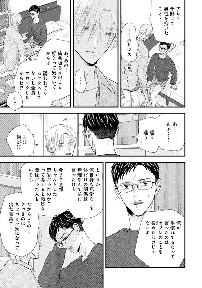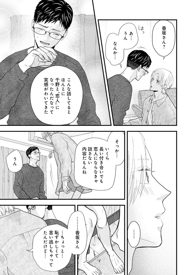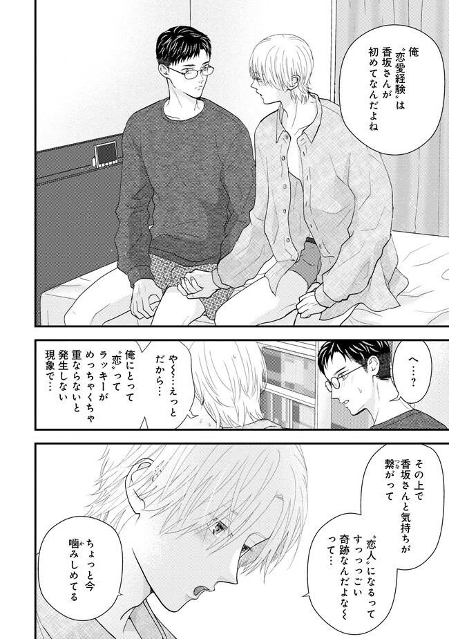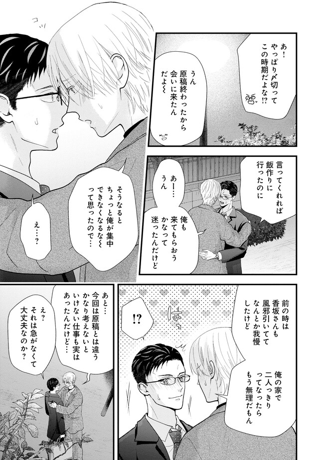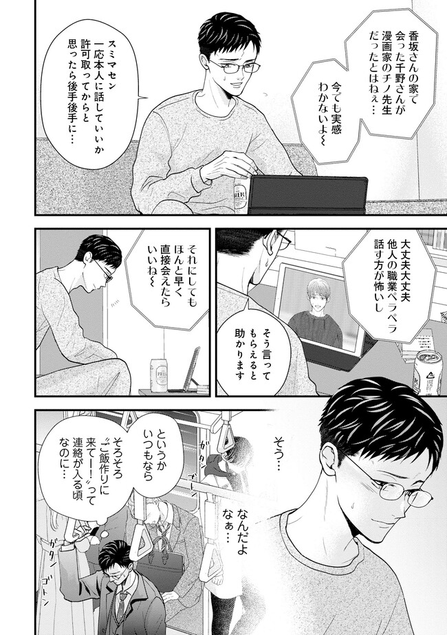 会社員の香坂は、今日も時間ぴったりに仕事を終わらせ、とある男の家に夜ご飯を作りに向かっていた。その男とは、香坂の元部下であり、つい「推し」と呼んでしまう相手・千野だ。 千野は香坂の下でのらりくらりと働いていたやる気のない男だったが、それは夢である漫画家になるため日々寝ずに作業していたからであった。 ある日その夢が叶い、漫画の連載が決まって退職することになる。それを叱るどころか共に喜んでくれた香坂に千野は懐き始めるが、香坂は実は自身がゲイであることを隠したままだった…。自堕落な生活の中で漫画を描き続ける千野の姿を心配し、香坂は何かと世話をやいていたが…? 甘え上手なクズ漫画家×世話焼き健気リーマンのほだされラブ!