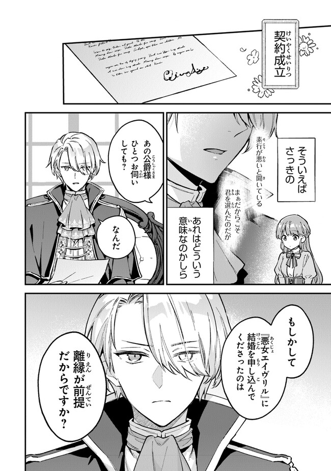 類まれな能力を持ちながら、家族に“無能”と虐げられて育った令嬢・エイヴリル。素行の悪い義妹の身代わりに『好色家の老いぼれ公爵様』のもとへ嫁ぐことになるが、実際の公爵・ディランは、噂とは真逆の美しい青年だった。彼が望む「悪女を妻に迎え、三年後に離縁する契約」は、エイヴリルにとって未来の自由を意味する絶好の条件。張り切って“悪女”を演じる不思議な“才女”に、周囲は困惑しつつも次第に惹かれていく――