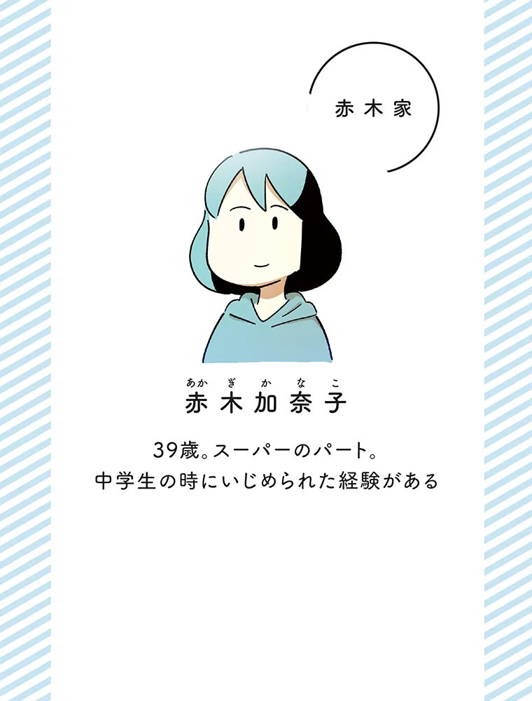【あらすじ】中学時代にいじめられた経験を持つ赤木加奈子はある日、小学5年生の娘・愛が同級生の馬場小春をいじめていることを知り、家族で馬場家に謝罪に向かう。加奈子たちの謝罪はその場では受け入れてもらえたものの、小春はその後、不登校になってしまう。小春の母・千春は苦しむ娘を見て知り合いに相談するが、SNS上での匿名の告発をきっかけに、思いもよらない事態へと発展してしまうのだった──。我が子への不信感、夫との意見の相違、SNSで巻き起こる炎上…様々な問題に翻弄される二つの家族。自分の子供がいじめの当事者と知った時、「正しい対応」とは果たして何なのか?いじめ問題を加害者家族、被害者家族双方の視点から描く、意欲的セミフィクション。【「シリーズ 立ち行かないわたしたち」について】「シリーズ 立ち行かないわたしたち」は、KADOKAWAコミックエッセイ編集部による、コミックエッセイとセミフィクションのシリーズです。本シリーズでは、思いもよらない出来事を経験したり、困難に直面したりと、ままならない日々を生きる人物の姿を、他人事ではなく「わたしたちの物語」として想像できるような作品を刊行します。見知らぬ誰かの日常であると同時に、いつか自分にも起こるかもしれない日常の物語を、ぜひお楽しみください。