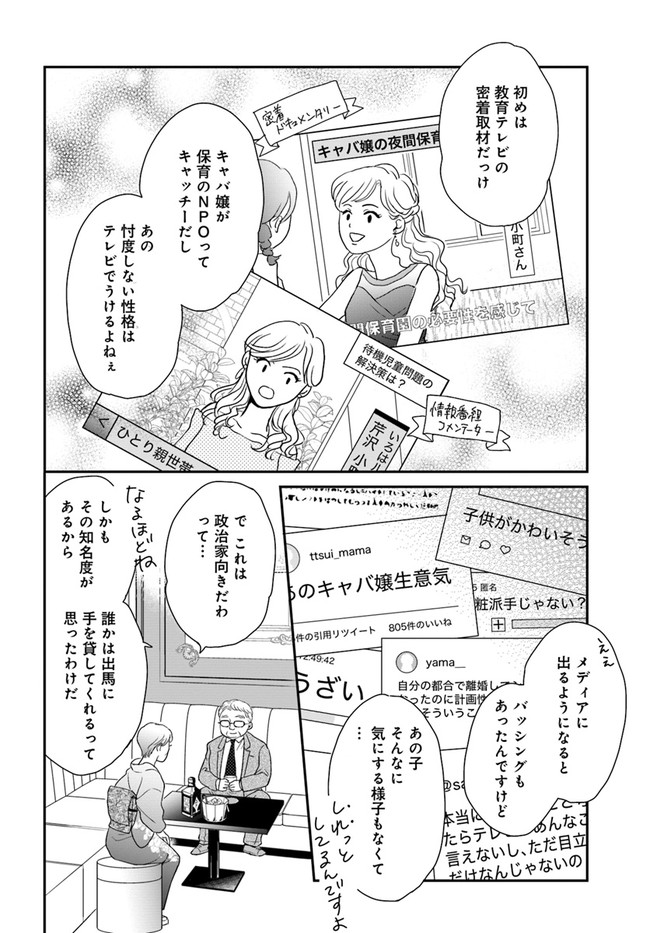 現役キャバ嬢代議士・小町が奮闘! 全有権者必読の政治エンタメ!  「夜の銀座」専門の託児施設を立ち上げた行動力を買われて衆院選に出馬、見事初当選を果たした芹沢小町。“現役”キャバクラ嬢でシングルマザーという経歴、物怖じしないキャラクターがメディアで話題となり、働く母親達を中心に熱い支持を集めている。ひとり親家庭、貧困、埋まらない男女格差。“ジェンダー不平等国”ニッポンに、小町のパワーは風穴を開けられるのか!?