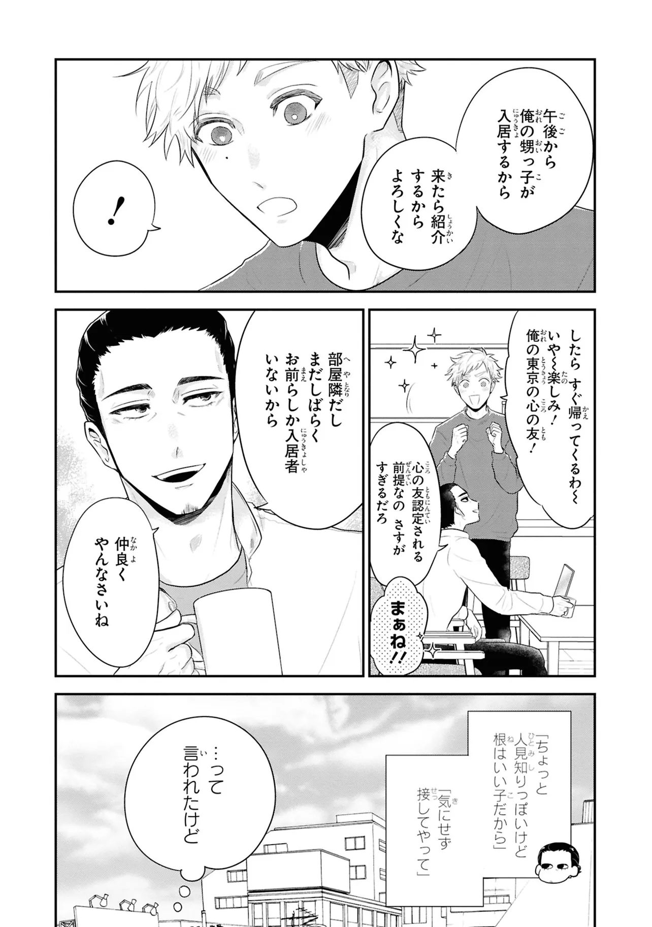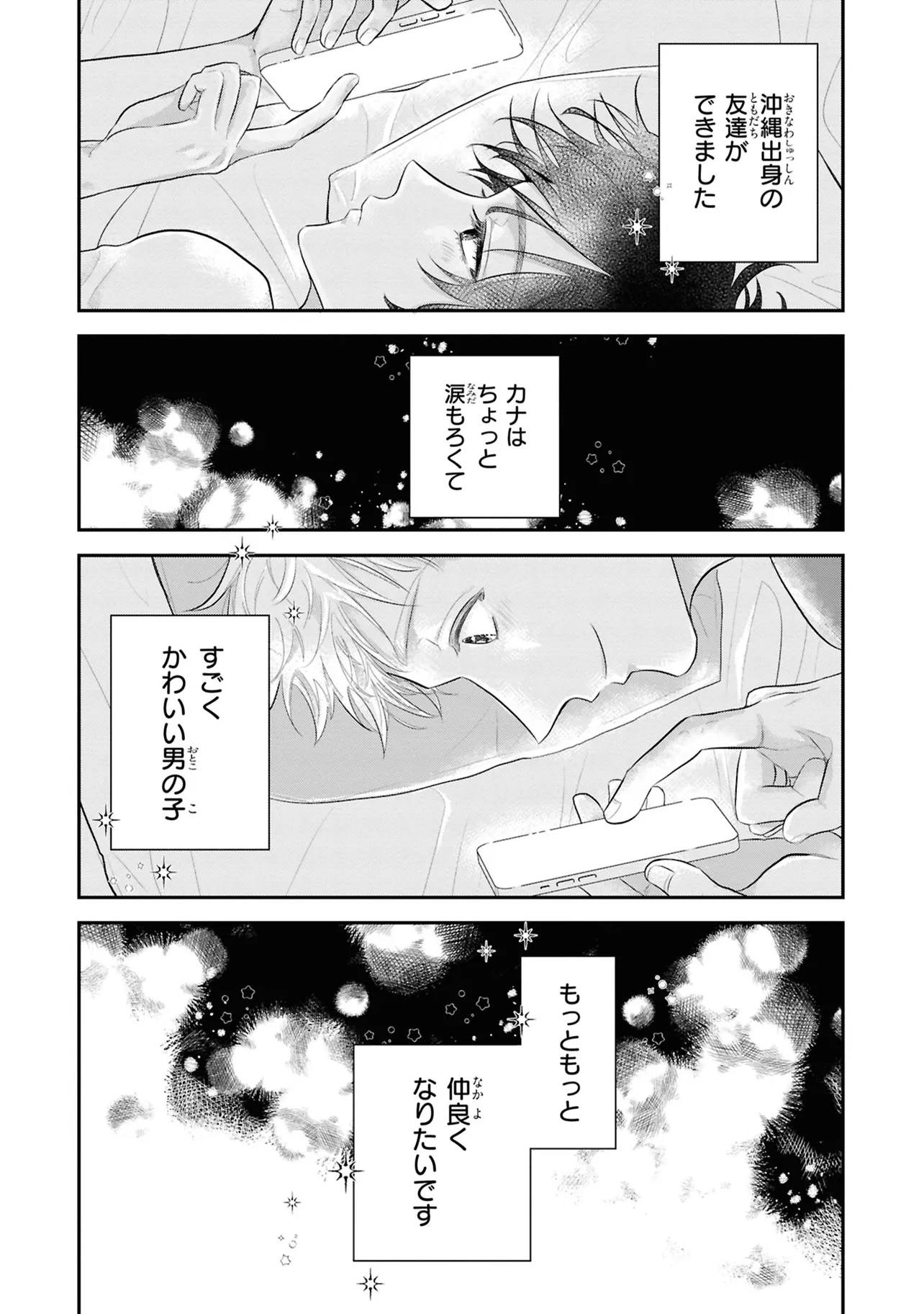 泣きむしのポラリス 第1話 北からと南から 泣きむしのポラリス 投稿者 admin - 4か月 前に 幸せな読書漫画 泣きむしのポラリス 第1話 北からと南から , いいねと共有ボタンをクリックすることを忘れないでください. Manga 泣きむしのポラリス 常に更新されます 無料コミック Comic Top. 他のマンガの更新を読むことを忘れないでください。 マンガコレクションのリスト 無料コミック Comic Top マンガリストメニューにあります. お友達と共有しましょう! Facebook Twitter Pinterest Whatsapp 前のエピソード すべての章 次のエピソード リスト ページング Loading.. 前のエピソード すべての章 次のエピソード リスト ページング お友達と共有しましょう! Facebook Twitter Pinterest Whatsapp お気に入りに追加に続く 0 人 泣きむしのポラリス 東京の高校に通うためひとり上京した北海道生まれの貝沢慶太郎(通称:ケータ)は、 親の知り合いが経営する学生アパートに住むことに。 そこで出会った同い年で沖縄生まれの宮良翔波(通称:カナ)の顔面のよさに 思わず「イケメン!」と叫んでしまい、カナから嫌悪されてしまう。 そんなある日、ケータとカナはふたりきりで出かけることになって──!? 伊戸川チェル イケメンカッコいいツンデレハッピーほのぼの切ない同居学園モノ現代胸キュン高校生