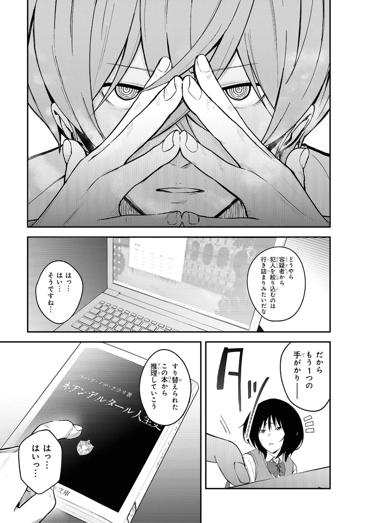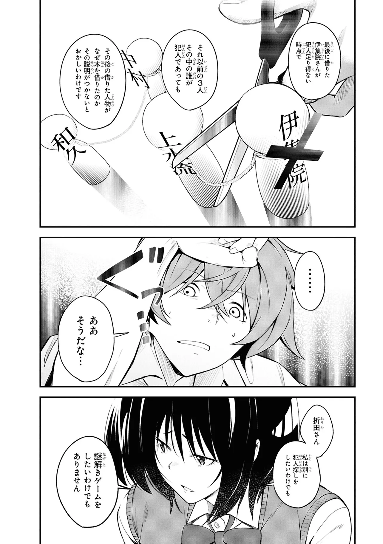 高校2年生・折田伊織は見知らぬ後輩女子に、この作品が孕んだ少年の死の謎を解き明かしてほしいと懇願される。――本作よろしく、椅子に拘束されながら。