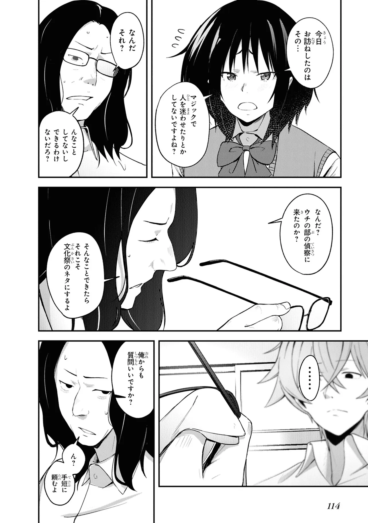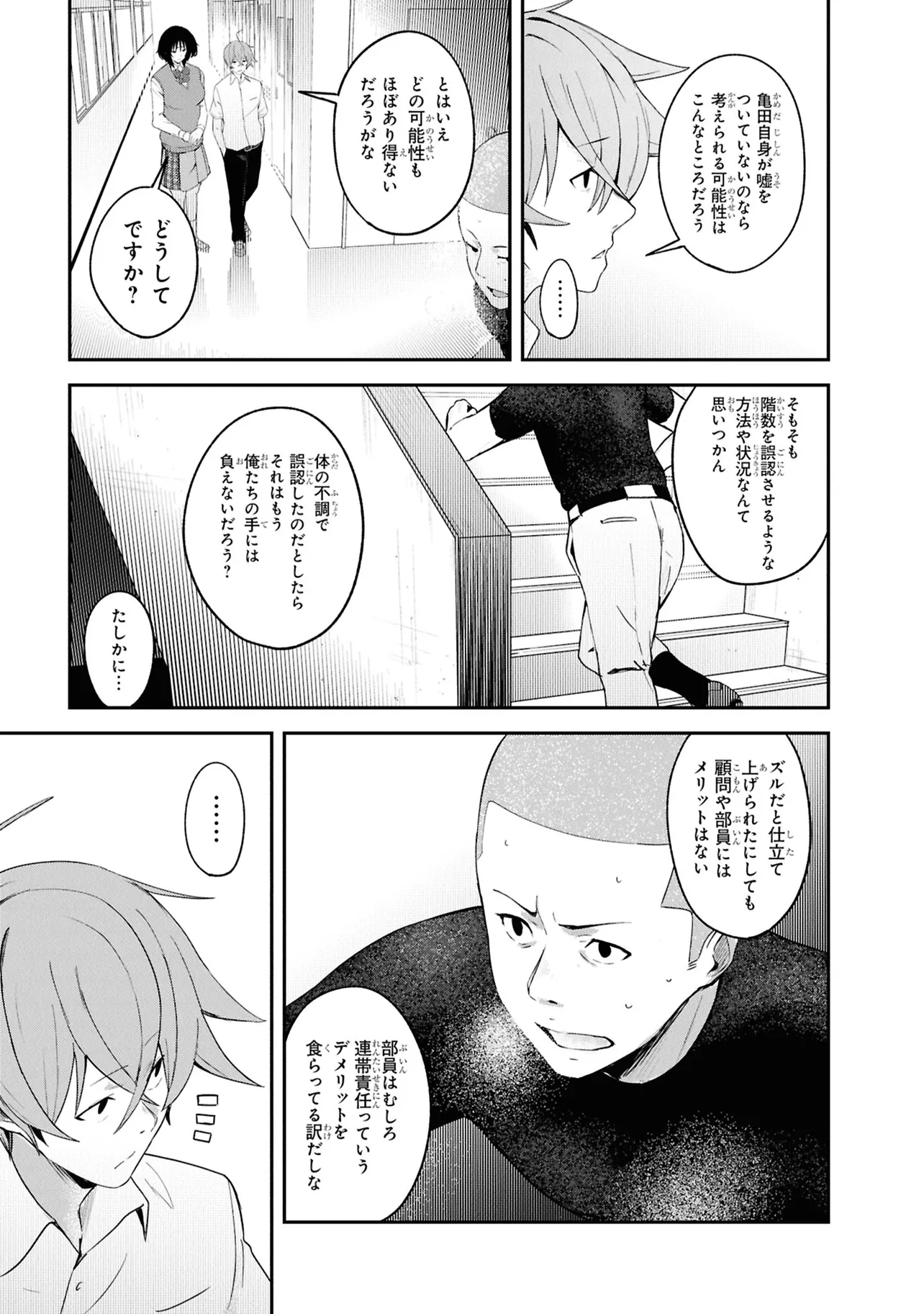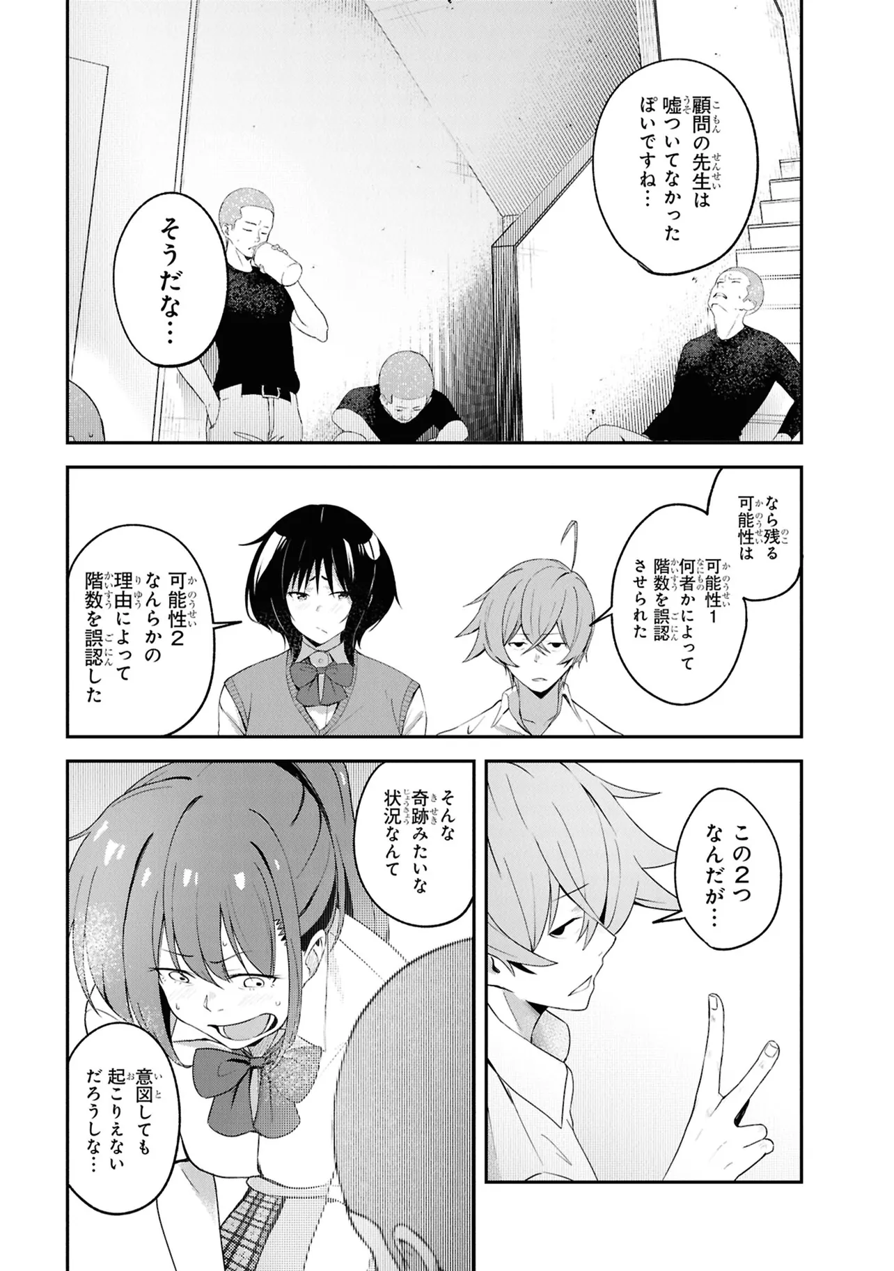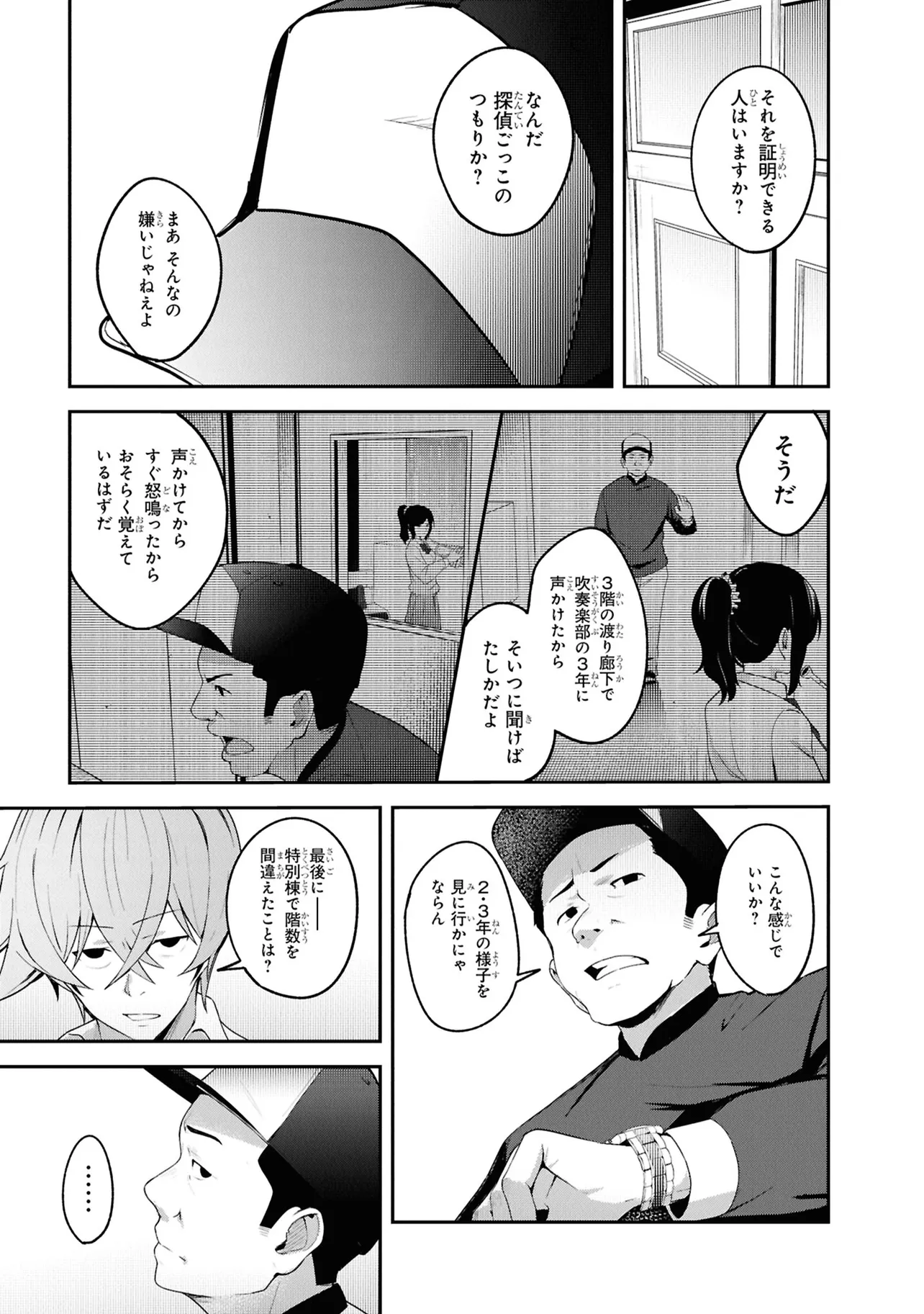 施錠された教室、机と椅子で施されたバリケード。眼前には椅子に拘束された自身の身体。少年は、自身が亡くなったことに気づく。 これは、文芸部のとあるミステリー小説。 高校2年生・折田伊織は見知らぬ後輩女子に、この作品が孕んだ少年の死の謎を解き明かしてほしいと懇願される。――本作よろしく、椅子に拘束されながら。 お礼になんでもひとつ願いを聞くという彼女の言葉につられ、頼みを受け入れることに決めるが――。 学校の謎を解き明かす。青春ディテクティブ活劇、開幕!!