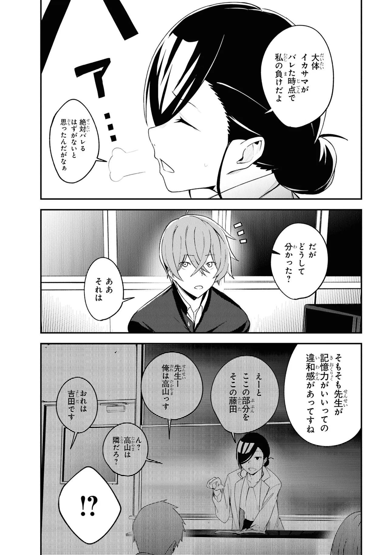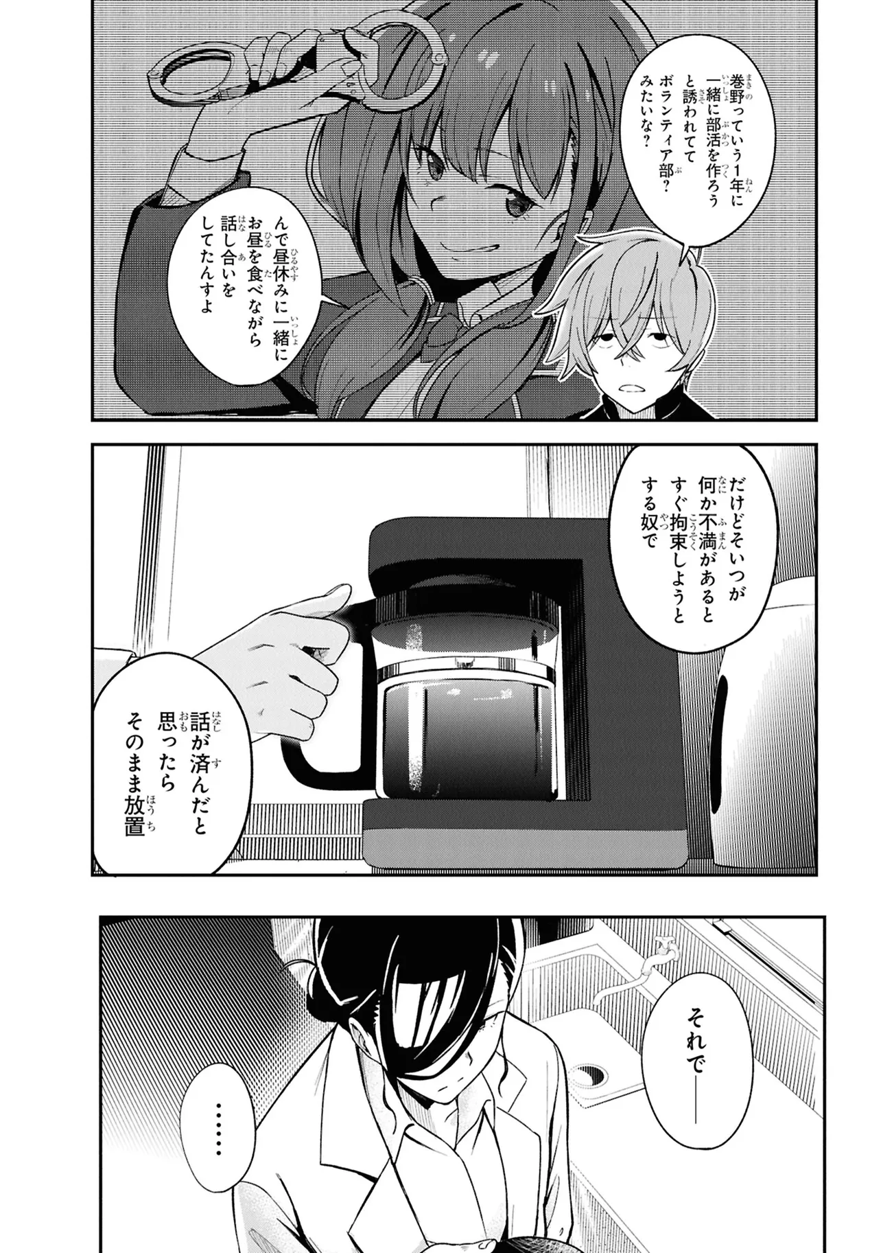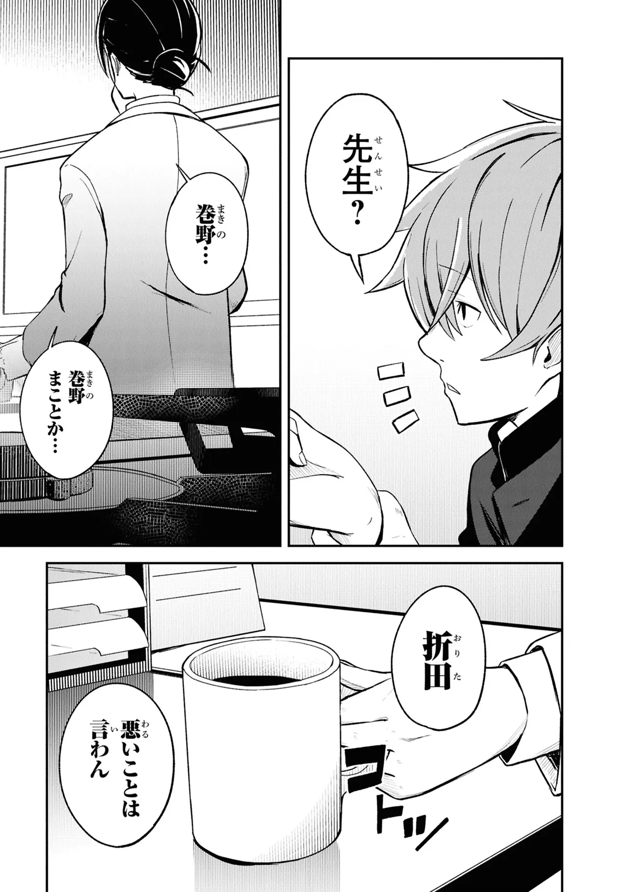 施錠された教室、机と椅子で施されたバリケード。眼前には椅子に拘束された自身の身体。少年は、自身が亡くなったことに気づく。 これは、文芸部のとあるミステリー小説。 高校2年生・折田伊織は見知らぬ後輩女子に、この作品が孕んだ少年の死の謎を解き明かしてほしいと懇願される。――本作よろしく、椅子に拘束されながら。 お礼になんでもひとつ願いを聞くという彼女の言葉につられ、頼みを受け入れることに決めるが――。 学校の謎を解き明かす。青春ディテクティブ活劇、開幕!!