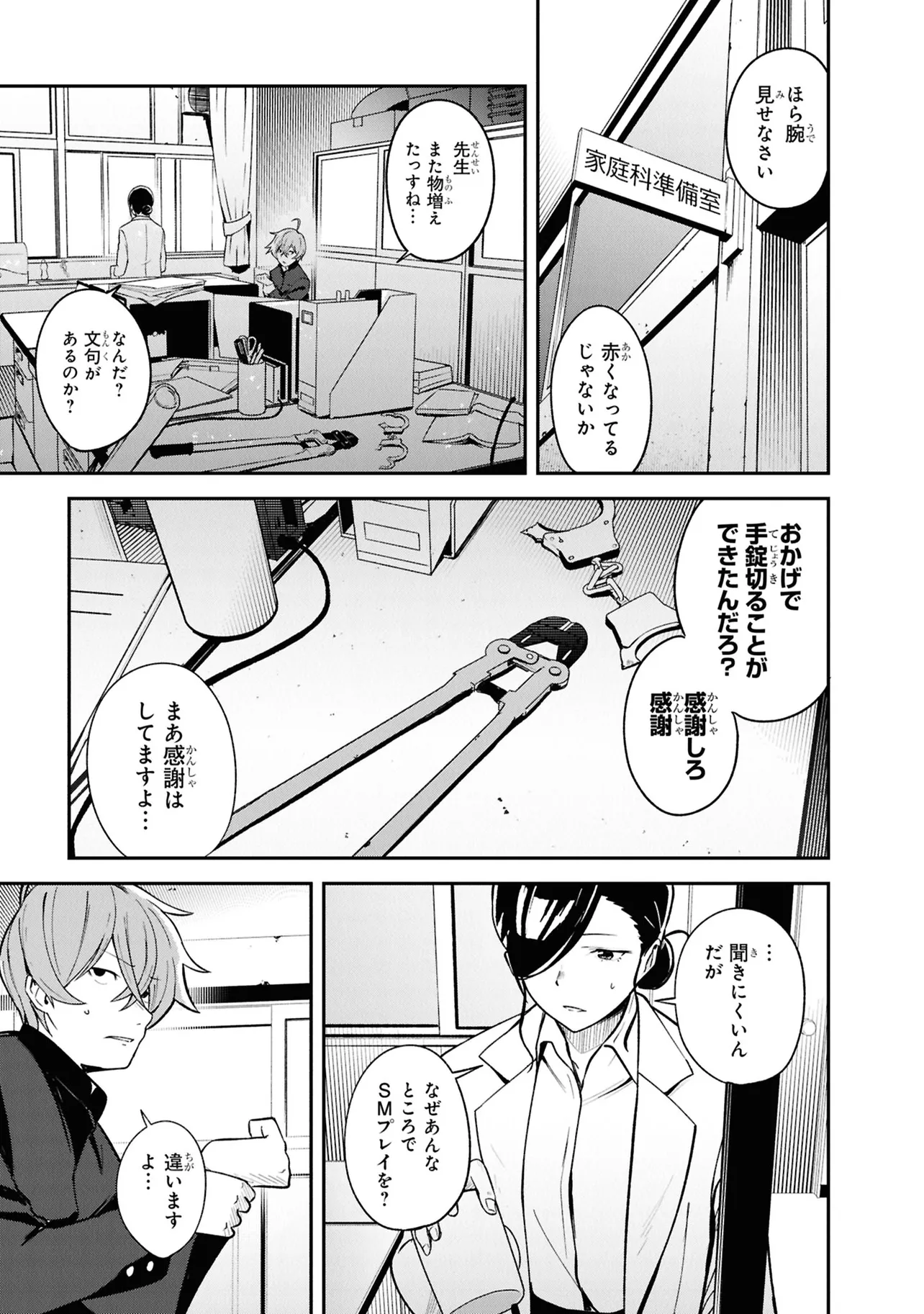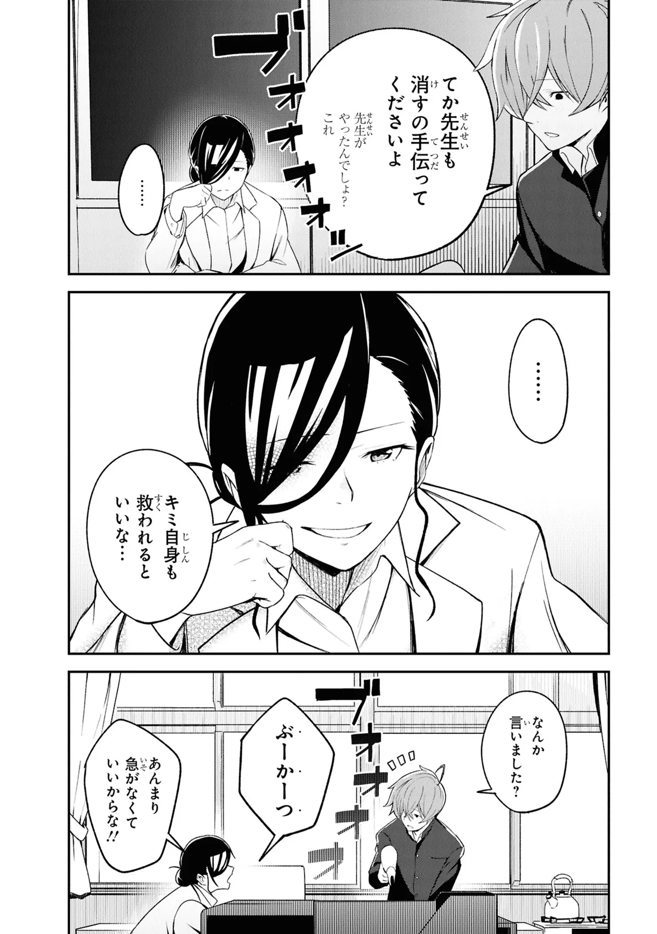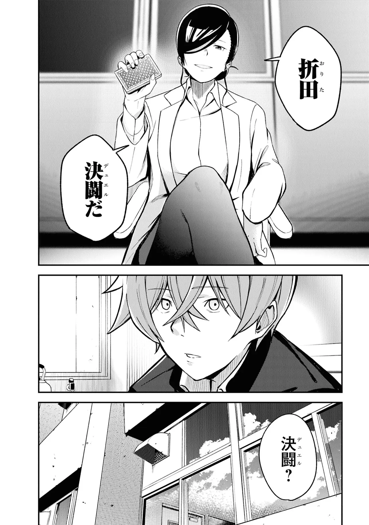 施錠された教室、机と椅子で施されたバリケード。眼前には椅子に拘束された自身の身体。少年は、自身が亡くなったことに気づく。 これは、文芸部のとあるミステリー小説。 高校2年生・折田伊織は見知らぬ後輩女子に、この作品が孕んだ少年の死の謎を解き明かしてほしいと懇願される。――本作よろしく、椅子に拘束されながら。 お礼になんでもひとつ願いを聞くという彼女の言葉につられ、頼みを受け入れることに決めるが――。 学校の謎を解き明かす。青春ディテクティブ活劇、開幕!!