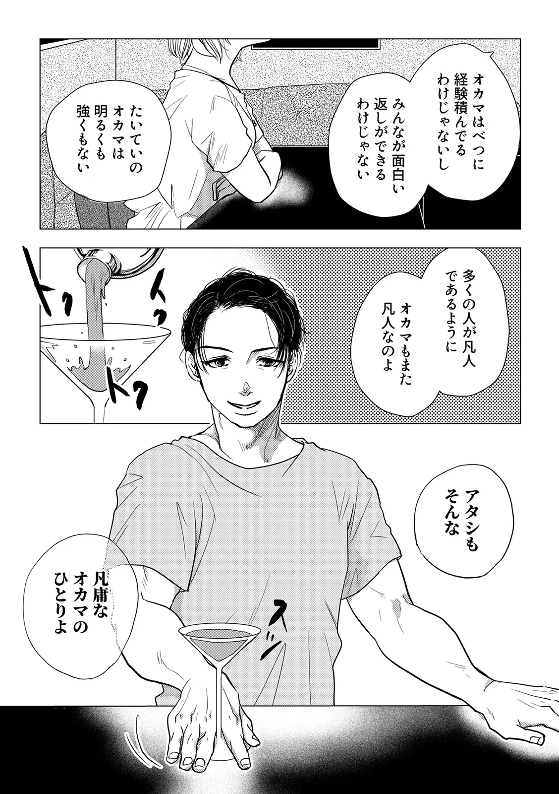 「たいていのオカマは明るくも強くもない」 「多くの人が凡人であるように、オカマもまた凡人なのよ」 自分もそんな凡庸な「しんどい」オカマのひとりと語り、 昼はふつうの会社に勤める主人公は、 夜はゲイバーで働きながら、お客さんの人生相談に答えている。 他人の幸せアピールがしんどい、モテる女を見るのがしんどい、自分がブスに思えてしんどい……。 誰もが共感できる日常のお悩みを、しっとり前向きに解きほぐす、オトナのためのコミックエッセイ。