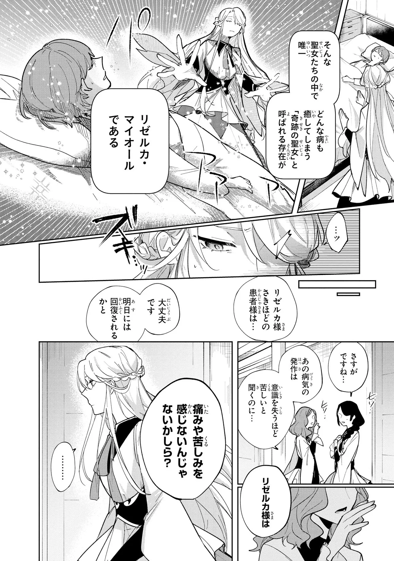 最高峰の魔力をもって人々を治療する聖女として教会で働くリゼルカは、ある日突然魔力を失ってしまう。原因がわからず焦る彼女のもとに、遊び人で有名な昔なじみの王属魔導士・シャノンがやってきて、「魔力を取り戻したいならついてこい」とリゼルカを強引に連れ出す。魔力を取り戻す方法を調べる中で、シャノンと「契り」を交わすことでリゼルカの魔力が戻るかもしれないと判明し――!?