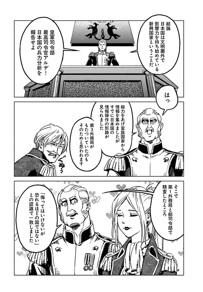 日本国召喚 第29話 日本国召喚 投稿者 admin - 3年 前に 幸せな読書漫画 日本国召喚 第29話 , いいねと共有ボタンをクリックすることを忘れないでください. Manga 日本国召喚 常に更新されます 無料コミック Comic Top. 他のマンガの更新を読むことを忘れないでください。 マンガコレクションのリスト 無料コミック Comic Top マンガリストメニューにあります. お友達と共有しましょう! Facebook Twitter Pinterest Whatsapp 前のエピソード すべての章 次のエピソード リスト ページング Loading.. 前のエピソード すべての章 次のエピソード リスト ページング お友達と共有しましょう! Facebook Twitter Pinterest Whatsapp お気に入りに追加に続く 3 人 日本国召喚 ある日、日本は突然異世界に転移した。食糧難に陥った日本政府は海上自衛隊所属【P-3C】を飛ばし、付近の探索を開始。大陸を発見した日本は、そこに発展途上ではあるが異世界の国の存在を確認し、交渉を始める。食糧の輸入とインフラ整備の輸出で、いったんは危機を脱した日本だが、国交を樹立した国の戦争に巻き込まれ、再び危機に直面する。 toi8(キャラクター原案)みのろう(原作)高野千春(漫画) コミカライズ男性向け異世界異世界コミック異世界モノ