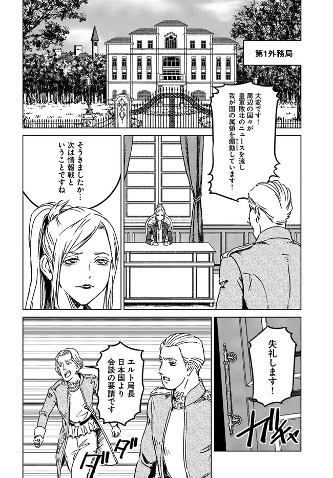 日本国召喚 第36話 日本国召喚 投稿者 admin - 3年 前に 幸せな読書漫画 日本国召喚 第36話 , いいねと共有ボタンをクリックすることを忘れないでください. Manga 日本国召喚 常に更新されます 無料コミック Comic Top. 他のマンガの更新を読むことを忘れないでください。 マンガコレクションのリスト 無料コミック Comic Top マンガリストメニューにあります. お友達と共有しましょう! Facebook Twitter Pinterest Whatsapp 前のエピソード すべての章 次のエピソード リスト ページング Loading.. 前のエピソード すべての章 次のエピソード リスト ページング お友達と共有しましょう! Facebook Twitter Pinterest Whatsapp お気に入りに追加に続く 3 人 日本国召喚 ある日、日本は突然異世界に転移した。食糧難に陥った日本政府は海上自衛隊所属【P-3C】を飛ばし、付近の探索を開始。大陸を発見した日本は、そこに発展途上ではあるが異世界の国の存在を確認し、交渉を始める。食糧の輸入とインフラ整備の輸出で、いったんは危機を脱した日本だが、国交を樹立した国の戦争に巻き込まれ、再び危機に直面する。 toi8(キャラクター原案)みのろう(原作)高野千春(漫画) コミカライズ男性向け異世界異世界コミック異世界モノ
