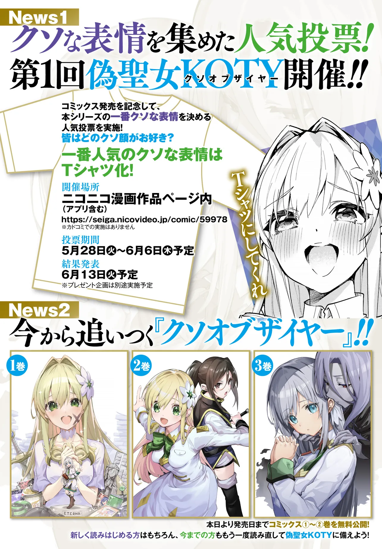 偽聖女クソオブザイヤー~理想の聖女? 残念、偽聖女でした!~ “コミックス3巻発売告知& 第1回偽聖女KOTY開催決定!”