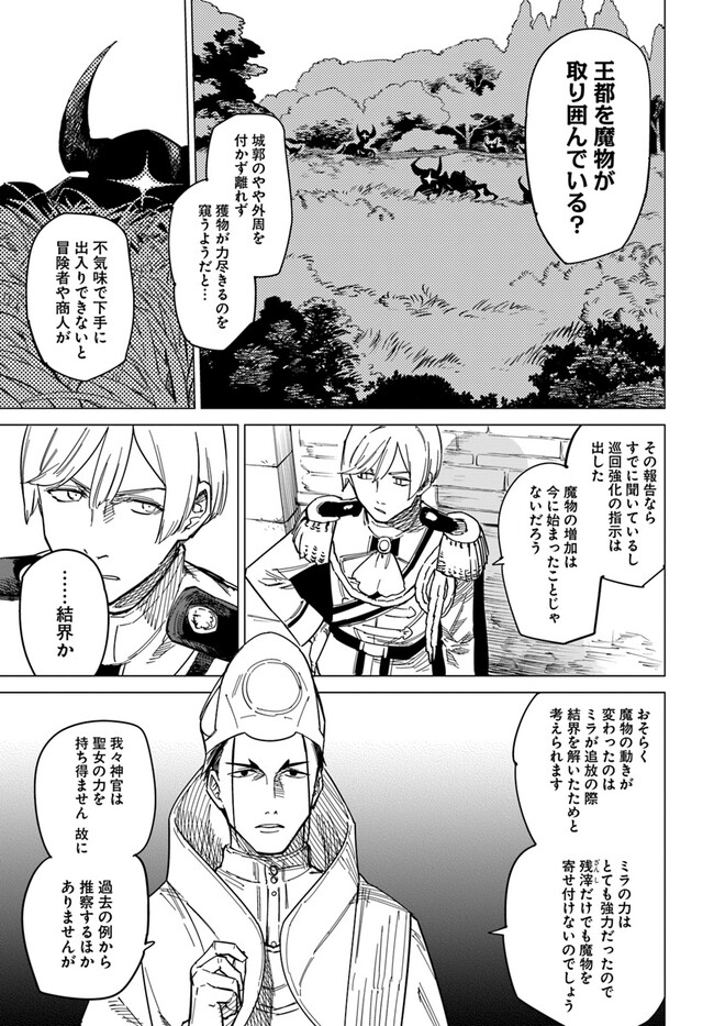 急な展開に驚きつつも、ミラは冒険者ギルドで出会った剣士ラウルに護衛を依頼し、母国に戻る旅をはじめる。