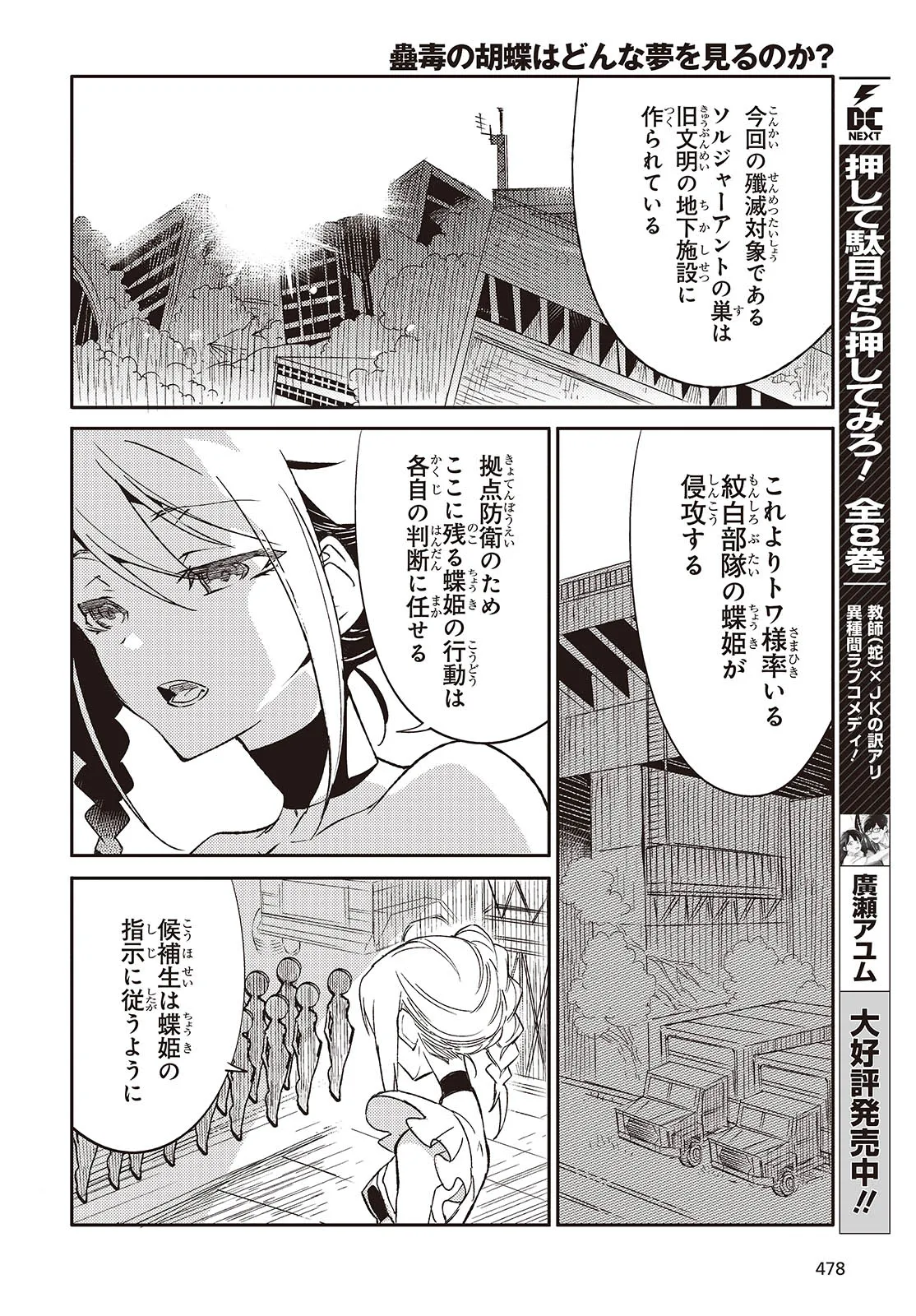 文明を破壊し人類を蹂躙した突然変異の虫の化身"鎧蟲"。その唯一の対抗策は、鎧蟲とは異なる進化を遂げた"虫"を宿す少女たち、"蝶妃"だけ。 万年蝶妃候補生のアユミは劣等生のレッテルを貼られ、絶望の淵に立ちながらも「世界を救う」という使命を胸に日々鍛錬を続ける。しかし努力の先にアユミを待ち受けていたのは、親友の裏切りと耐え難い現実で――。 これは、運命に翻弄されながらも、過酷な世界を生き抜くために。そして、世界を取り戻すために、もがき続ける少女たちの物語。