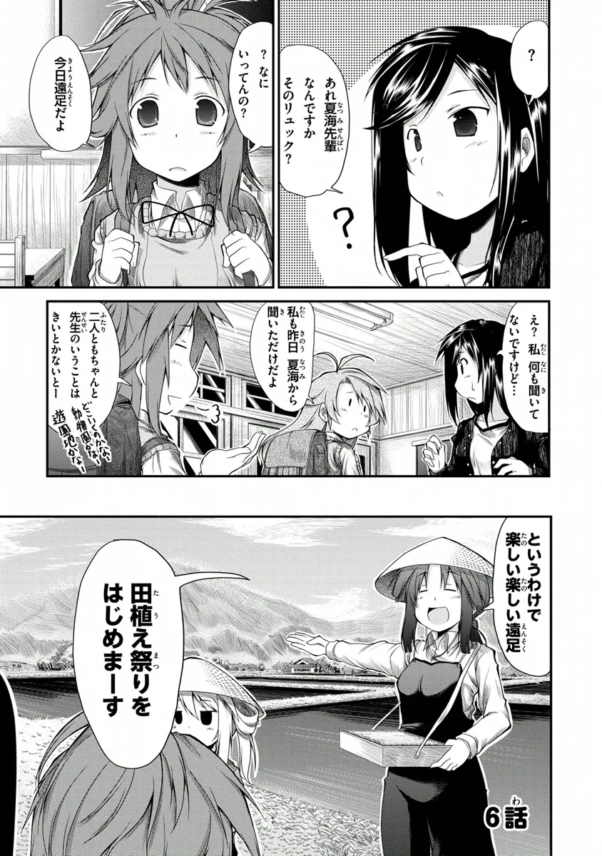 田舎にある学校「旭丘分校」には、小中合わせて生徒は5人のみ。みんな家の鍵は閉めないし、たぬきはよく出るし……どこか不便だけど、でも何だかんだで気ままに過ごしている。2013年10〜12月にTVアニメも放映された人気作