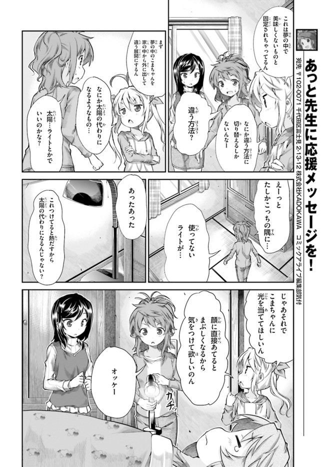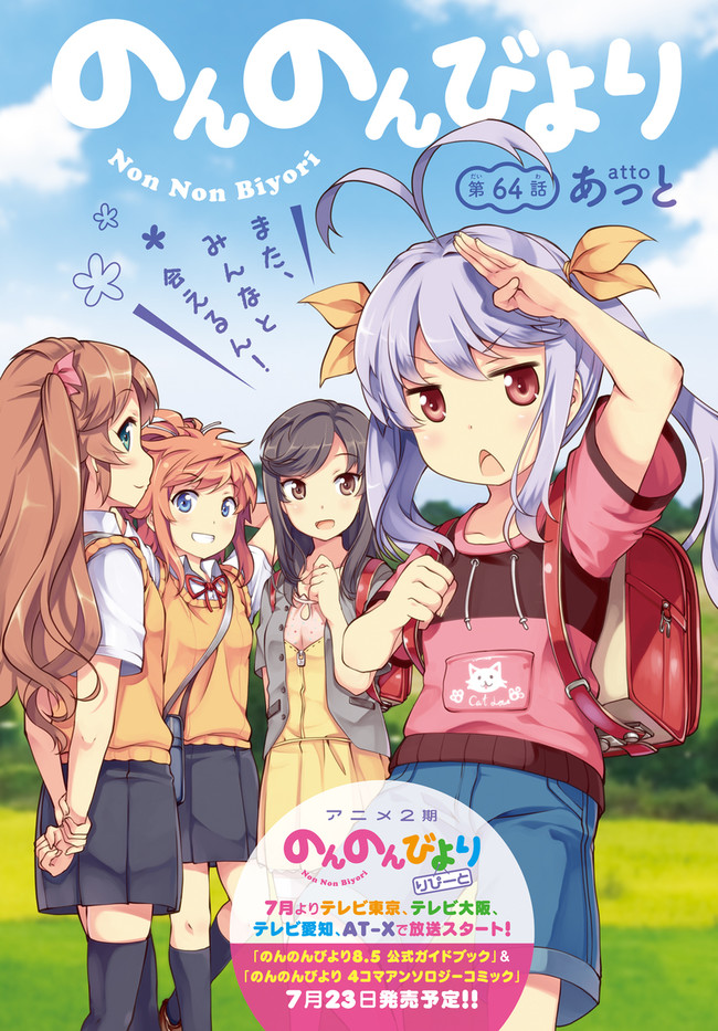 のんのんびより 第64話 のんのんびより 投稿者 admin - 2年 前に 幸せな読書漫画 のんのんびより 第64話 , いいねと共有ボタンをクリックすることを忘れないでください. Manga のんのんびより 常に更新されます 無料コミック Comic Top. 他のマンガの更新を読むことを忘れないでください。 マンガコレクションのリスト 無料コミック Comic Top マンガリストメニューにあります. お友達と共有しましょう! Facebook Twitter Pinterest Whatsapp 前のエピソード すべての章 次のエピソード リスト ページング Loading.. 前のエピソード すべての章 次のエピソード リスト ページング お友達と共有しましょう! Facebook Twitter Pinterest Whatsapp お気に入りに追加に続く 1 人 のんのんびより 田舎にある学校「旭丘分校」には、小中合わせて生徒は5人のみ。みんな家の鍵は閉めないし、たぬきはよく出るし……どこか不便だけど、でも何だかんだで気ままに過ごしている。2013年10〜12月にTVアニメも放映された人気作 あっと(著者) アニメ化日常系田舎