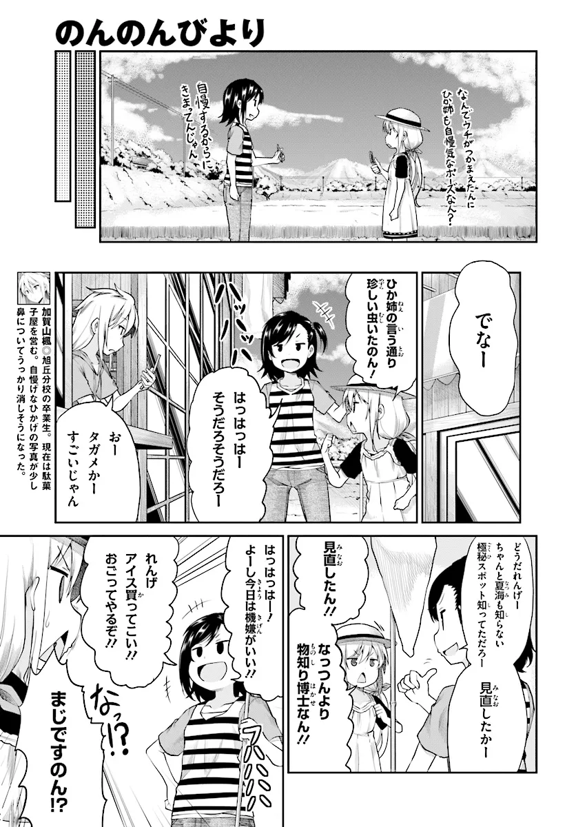 のんのんびより 第95話 のんのんびより 投稿者 admin - 2年 前に 幸せな読書漫画 のんのんびより 第95話 , いいねと共有ボタンをクリックすることを忘れないでください. Manga のんのんびより 常に更新されます 無料コミック Comic Top. 他のマンガの更新を読むことを忘れないでください。 マンガコレクションのリスト 無料コミック Comic Top マンガリストメニューにあります. お友達と共有しましょう! Facebook Twitter Pinterest Whatsapp 前のエピソード すべての章 次のエピソード リスト ページング Loading.. 前のエピソード すべての章 次のエピソード リスト ページング お友達と共有しましょう! Facebook Twitter Pinterest Whatsapp お気に入りに追加に続く 1 人 のんのんびより 田舎にある学校「旭丘分校」には、小中合わせて生徒は5人のみ。みんな家の鍵は閉めないし、たぬきはよく出るし……どこか不便だけど、でも何だかんだで気ままに過ごしている。2013年10〜12月にTVアニメも放映された人気作 あっと(著者) アニメ化日常系田舎