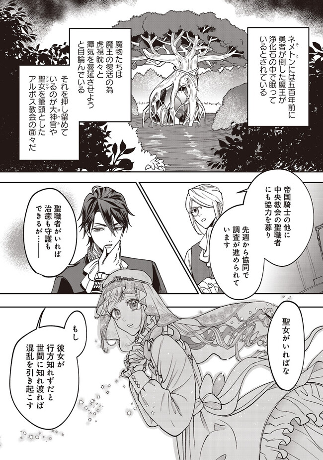 『帝国に舞い降りた精霊姫』と名高い聖女・シンシアは、実はちょっとお転婆な女の子。ある日、正体を隠して魔物討伐に参加することになったシンシアは、魔物の呪いによって猫にされてしまう!