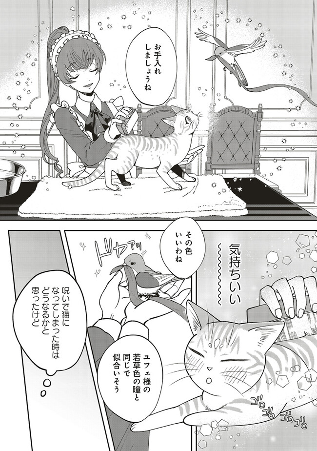 『帝国に舞い降りた精霊姫』と名高い聖女・シンシアは、実はちょっとお転婆な女の子。ある日、正体を隠して魔物討伐に参加することになったシンシアは、魔物の呪いによって猫にされてしまう!