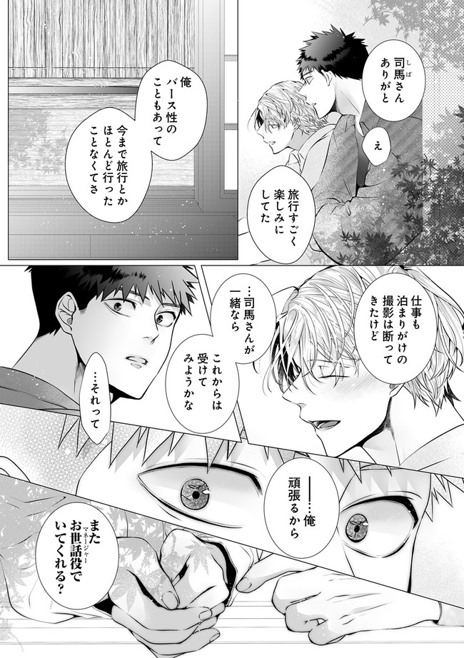 大手芸能事務所に採用されたβの司馬耕丞(しばこうすけ)。柔道経験を見込まれ入社早々任されたのは話題のΩモデル・奏(そう)のマネージャー! βの司馬でも惹きつけられるほど強いフェロモンを持つ奏は、態度は悪いがプロ意識が高く、モデルの仕事を完璧にこなしていく。奏の悪態に苛立ちながらも撮影に立ち会う司馬。撮影が終了し楽屋を覗くと――。