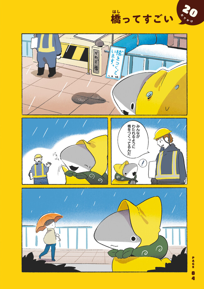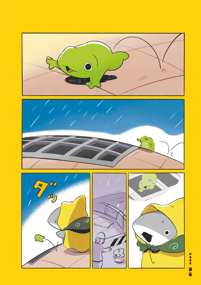 夏の日のサイダー、雨上がりの虹、そして優しい人々。 おでかけした子ザメちゃんを待っているのは日常の小さな奇跡。 初めての体験に子ザメちゃんは瞳キラキラ、心ほっこり。 どこか懐かしいハートウォーミング物語。