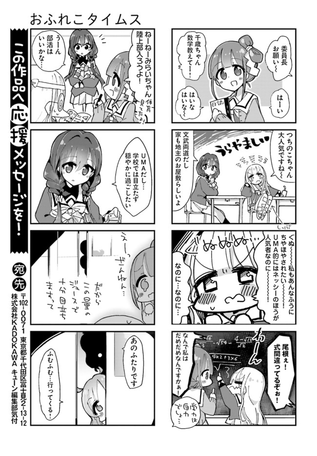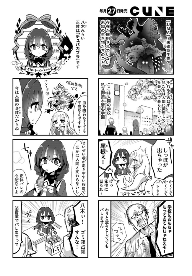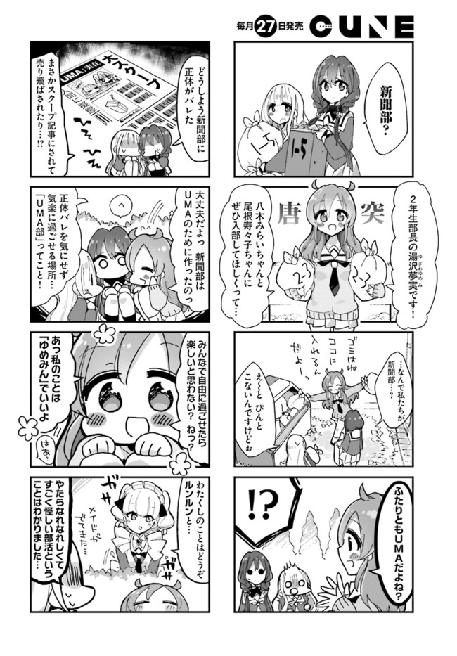 私たちUMA(未確認生物)です。人間に化けて暮らしています。――UMAだって年頃の乙女なんです! 人間の学校で暮らすUMAたちが「新聞部」を秘密基地にドタバタ生活を送るモンスターコメディ!