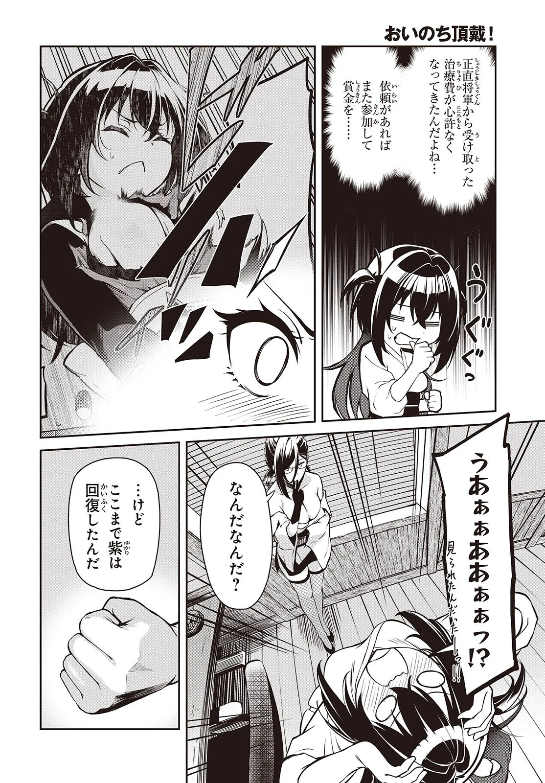 おいのち頂戴! 第3話① おいのち頂戴! 投稿者 admin - 1年 前に 幸せな読書漫画 おいのち頂戴! 第3話① , いいねと共有ボタンをクリックすることを忘れないでください. Manga おいのち頂戴! 常に更新されます 無料コミック Comic Top. 他のマンガの更新を読むことを忘れないでください。 マンガコレクションのリスト 無料コミック Comic Top マンガリストメニューにあります. お友達と共有しましょう! Facebook Twitter Pinterest Whatsapp 前のエピソード すべての章 次のエピソード リスト ページング Loading.. 前のエピソード すべての章 次のエピソード リスト ページング お友達と共有しましょう! Facebook Twitter Pinterest Whatsapp お気に入りに追加に続く 3 人 おいのち頂戴! 何をやっても失敗ばかりのポンコツくノ一・瑠璃。彼女がめげずに任務に励むのは、病に伏せる妹・紫のためだった。 そんなある日、瑠璃はエド幕府将軍・徳山天頼の首に十万両もの懸賞金が懸かっていることを知る。 天頼の住むエド城は難攻不落のカラクリ魔城。ポンコツくノ一の魔城攻略、いざ開幕! 神地あたる お色気ラブコメ女主人公笑える