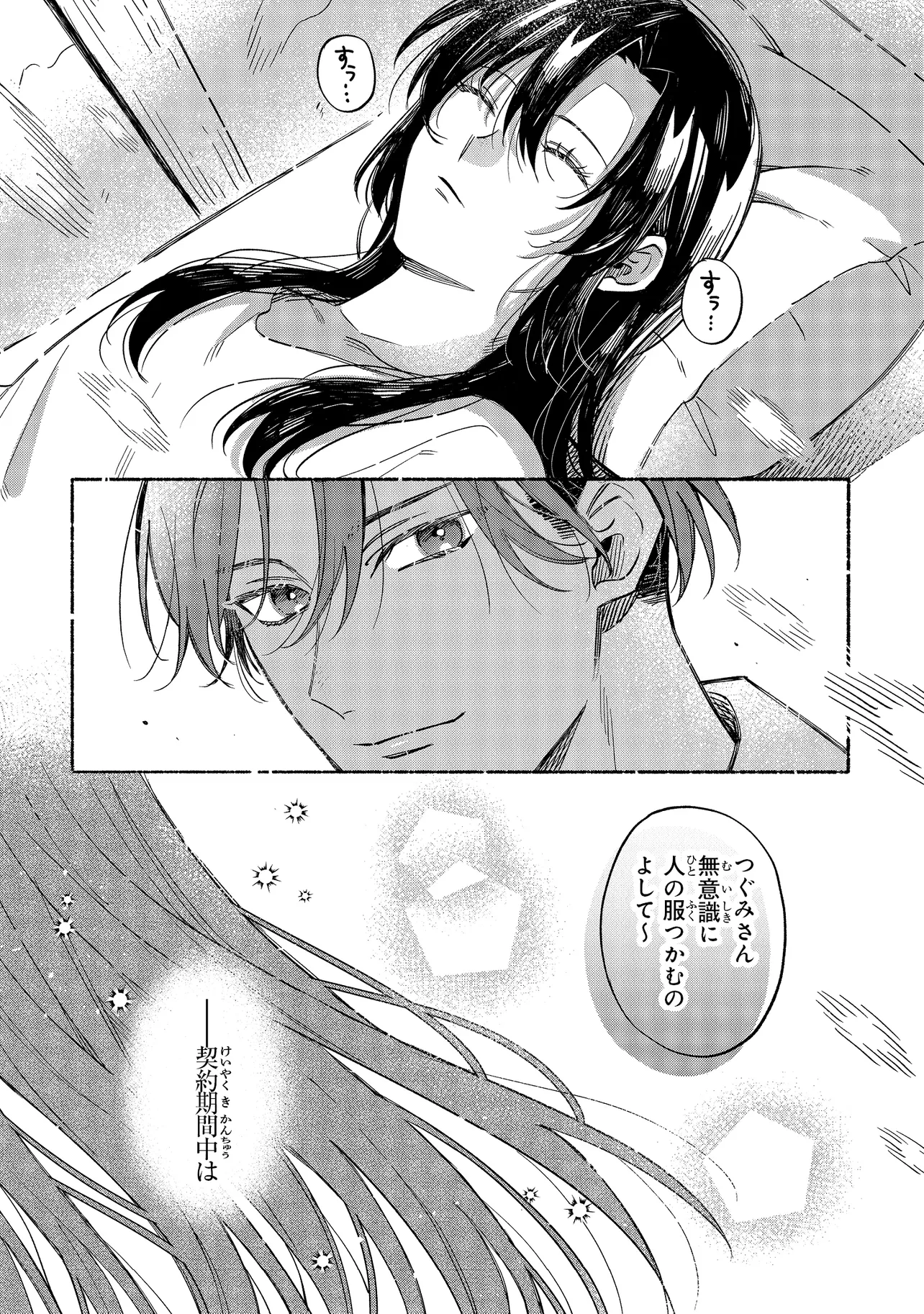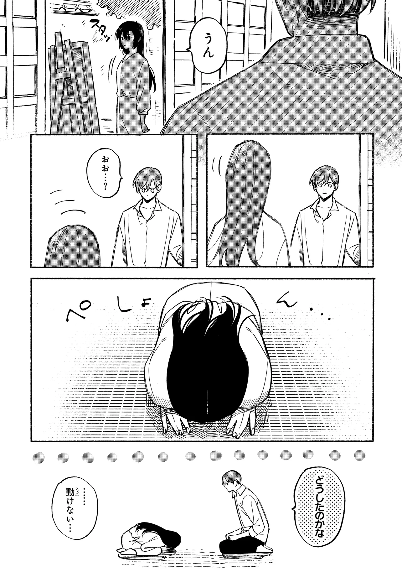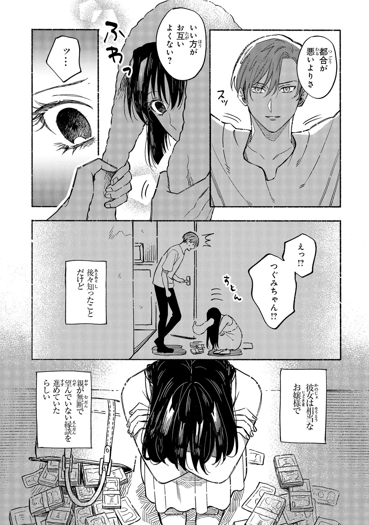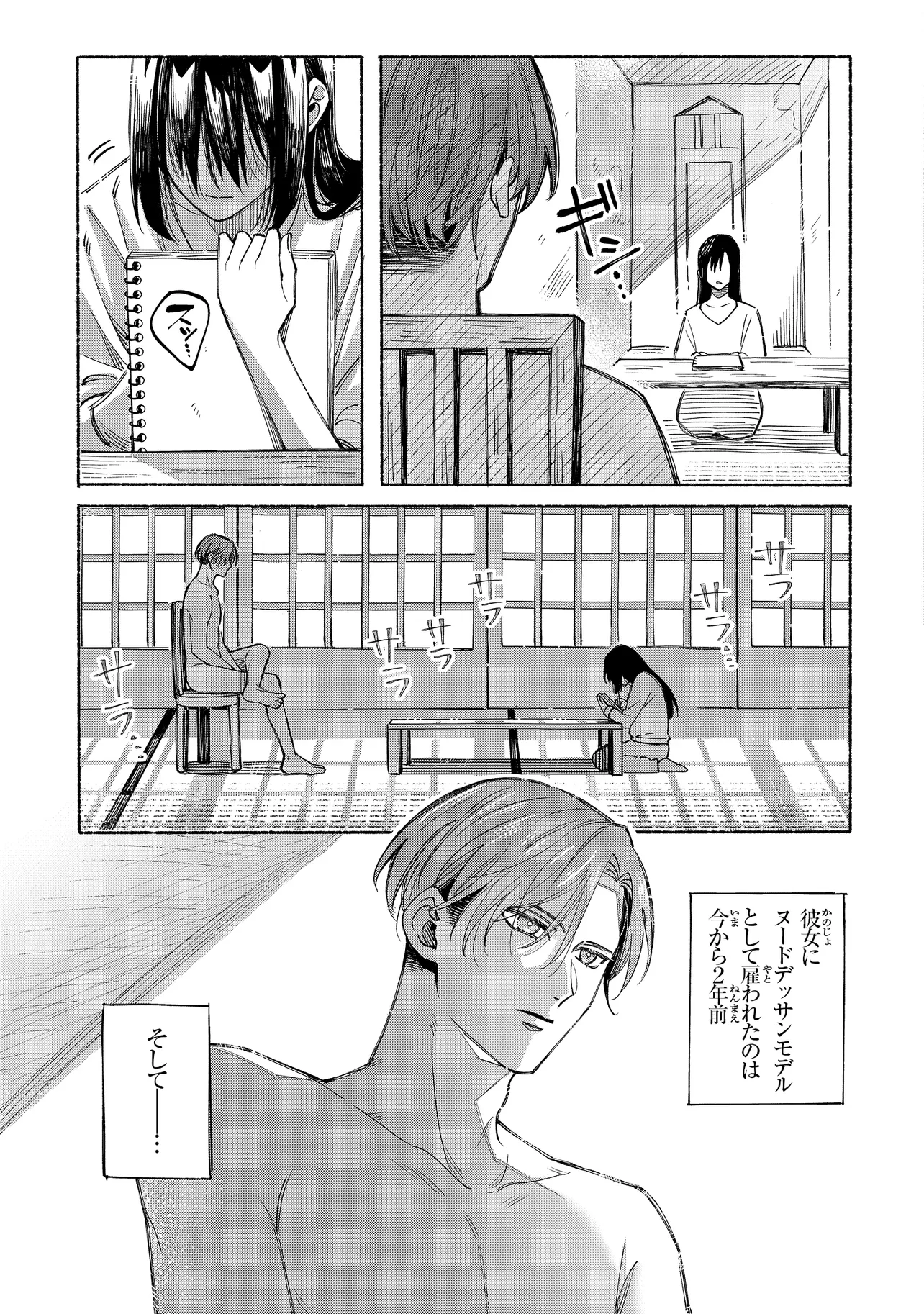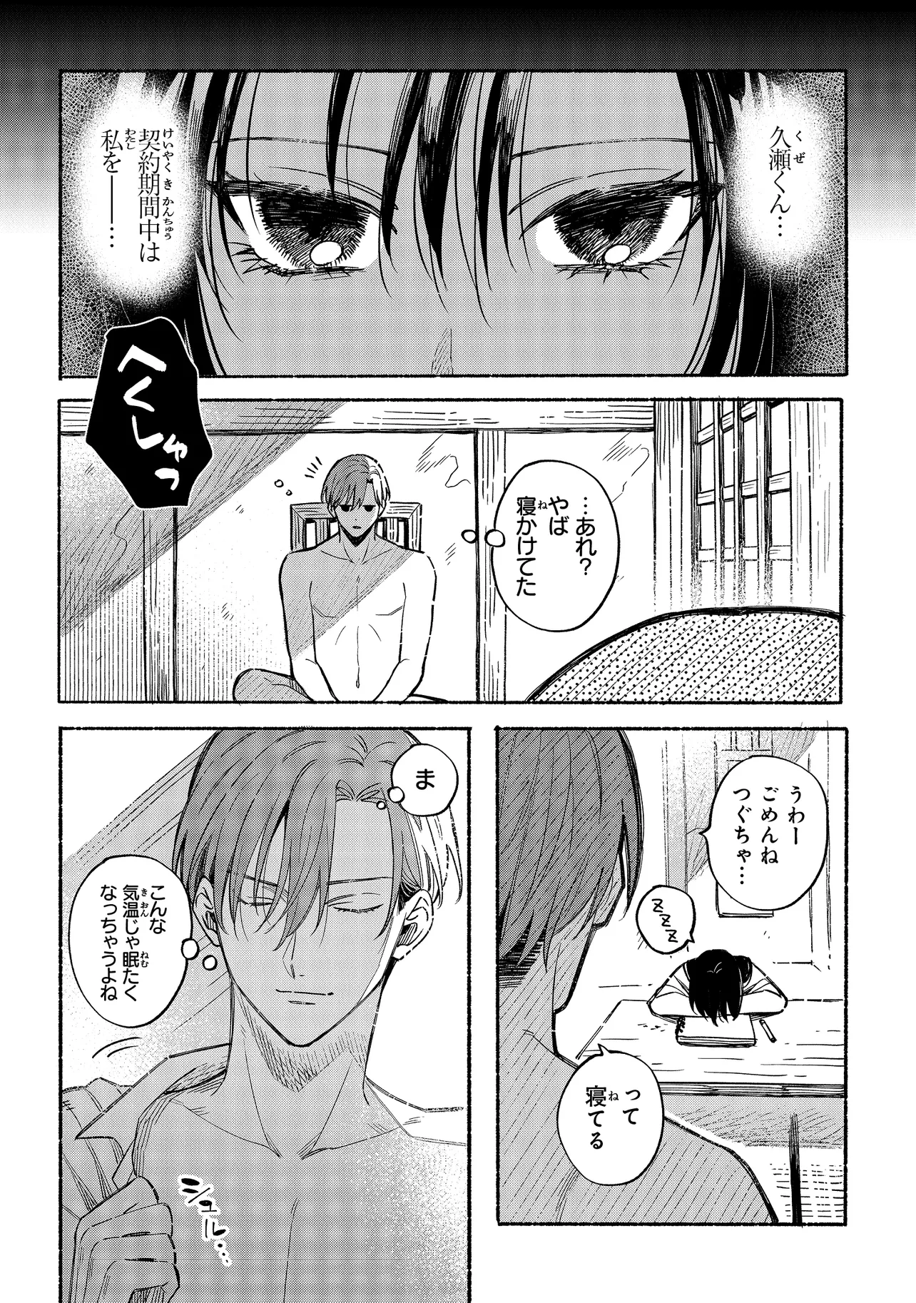 画家の鹿名田つぐみと、彼女の絵のヌードデッサンのモデルを務める久瀬葉は、半年前に結婚したばかりの新婚夫婦。一見仲睦まじい2人だが、実は葉は、つぐみが不本意な見合いから逃れるために3000万円で「契約した」偽りの夫だった――。