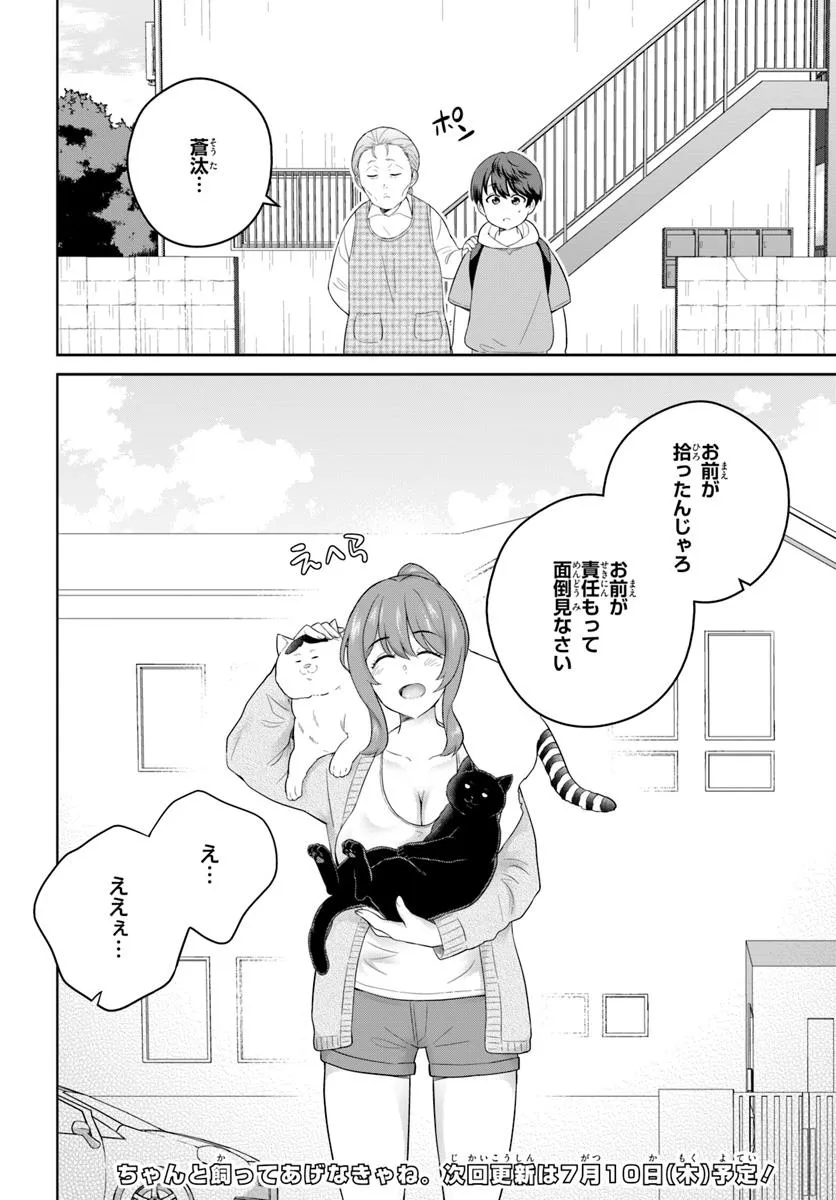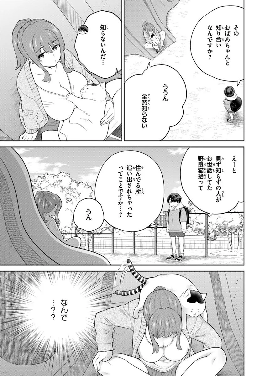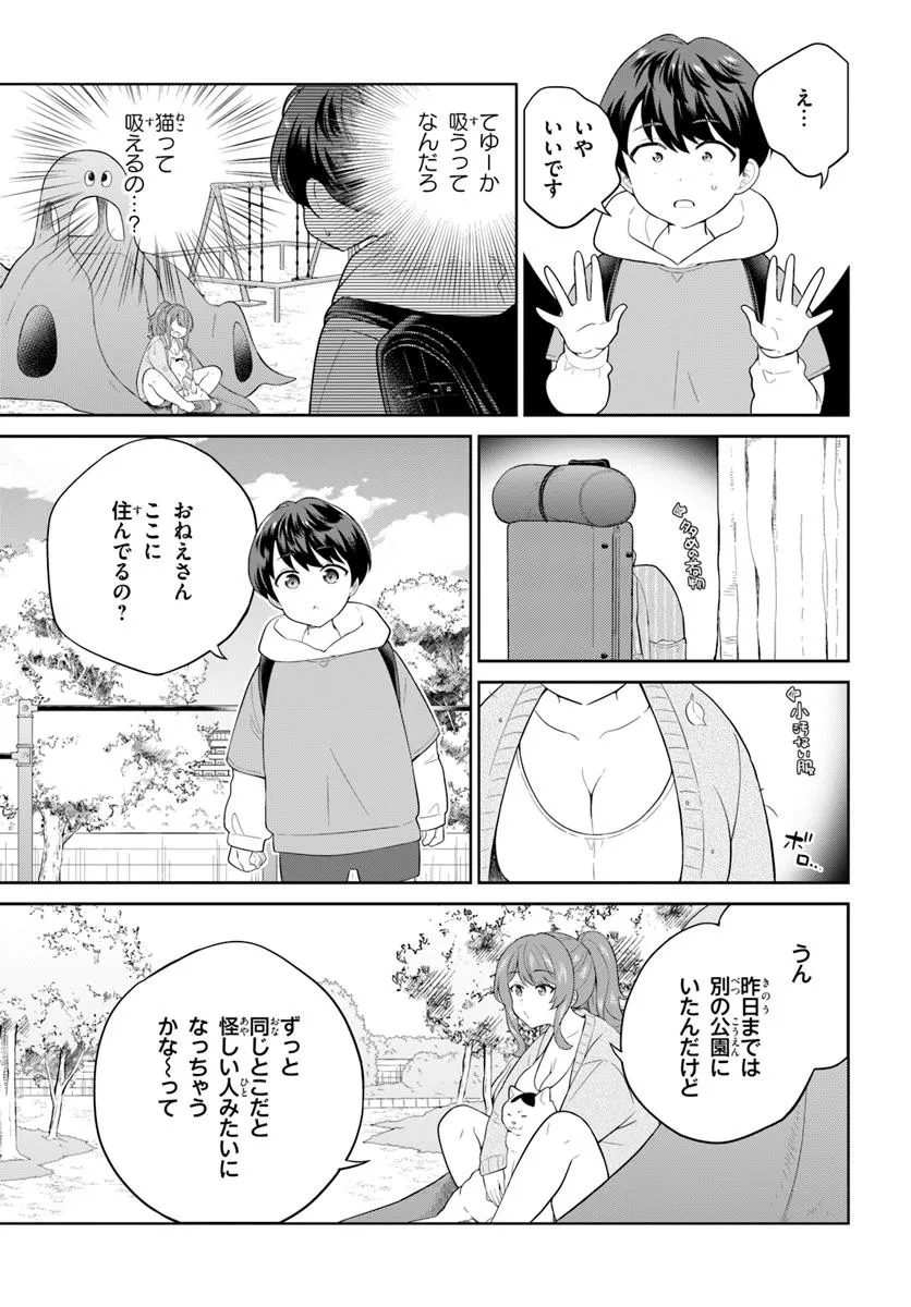 ある日、学校の帰り道。 少年がいつも通り公園を歩いていると、そこにいたのは── 「ネコチャン吸う?」 謎のおねえさんと、おねえさんに吸われている猫。 話を聞くと、家がないから公園に住んでいるらしい……。 かわいそうだから、おねえさんと猫を拾って帰る少年に、祖母が一言。 「お前が拾ったんじゃろ? お前が責任もって面倒見なさい」 少年とおねえさんと猫の、ちょっとえっちで騒がしい日常が始まった。