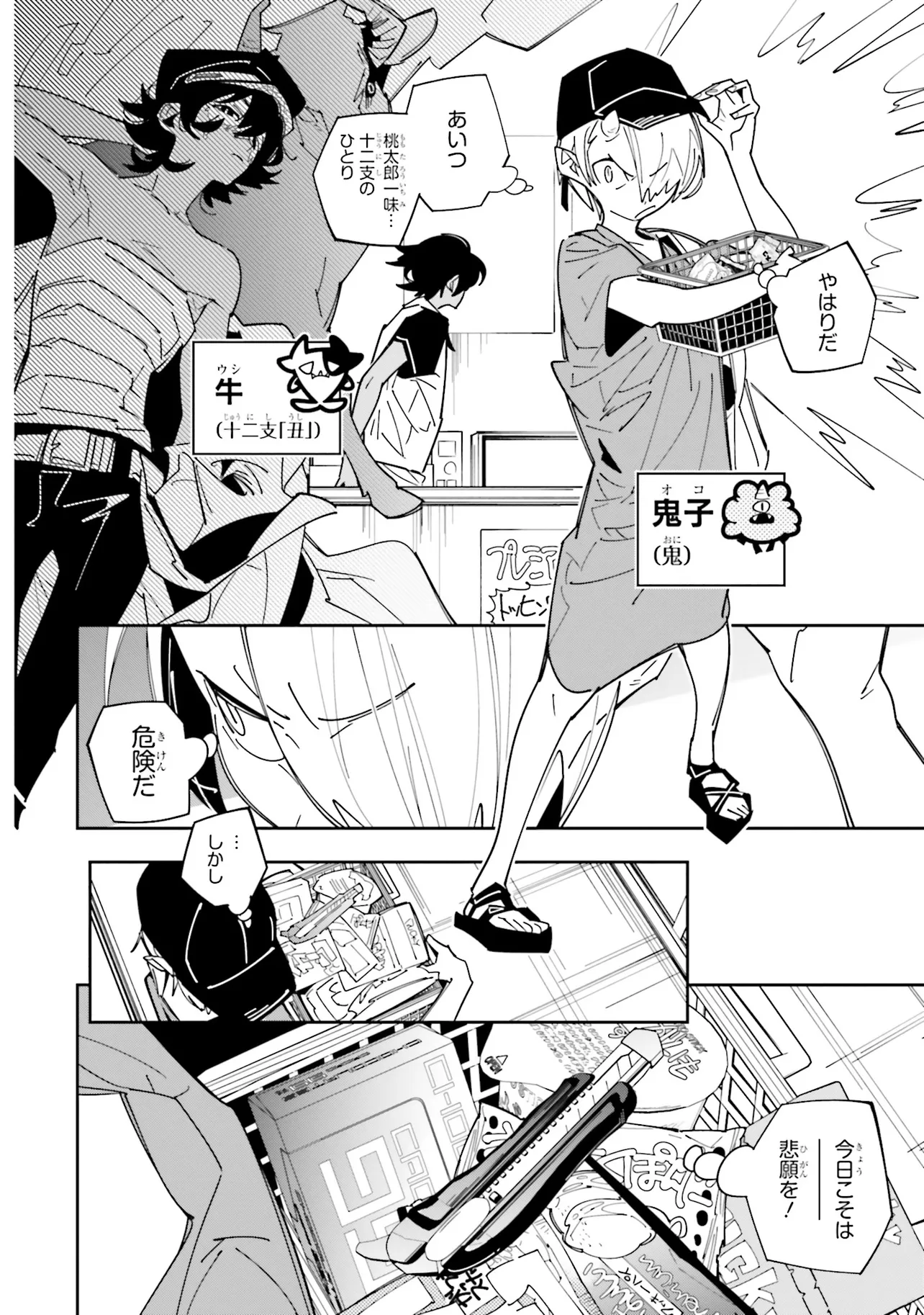 桃太郎×十二支×拷問具!? 加害者と被害者が錯綜するノンストップ・テイル! 『白アリッッ』で「白雪姫×鏡の国のアリス」の世界を描いたぺぷ最新作は、日本昔話を元に描くファンタジー! 鬼ヶ島でまさに今退治されようとしていた鬼の少女は、現代日本へと転生した。 ただし、彼女を退治した桃太郎と、拷問具の性質を持つおつきの十二支たちも一緒に。 平和な現代で、鬼の少女はYouTuberとなってASMR動画配信をはじめるが、そんな彼女を狙う十二支たちは……。