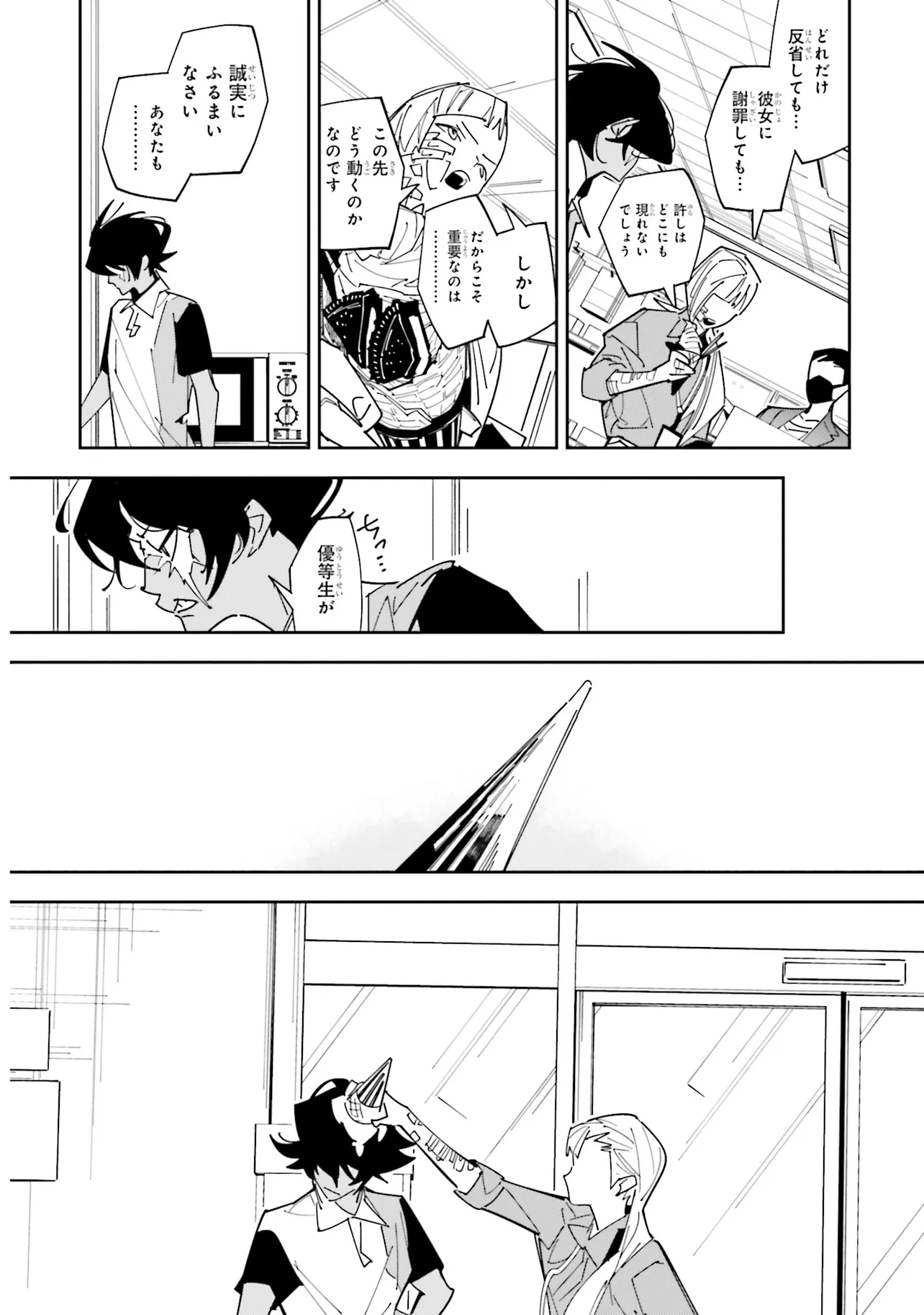 施錠された教室、机と椅子で施されたバリケード。眼前には椅子に拘束された自身の身体。少年は、自身が亡くなったことに気づく。 これは、文芸部のとあるミステリー小説。 高校2年生・折田伊織は見知らぬ後輩女子に、この作品が孕んだ