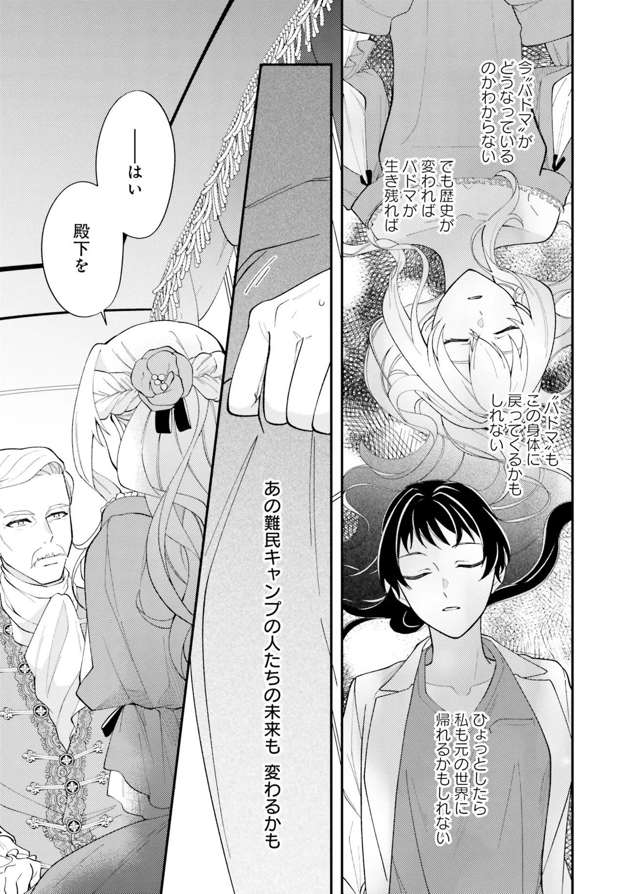 難民キャンプで働く医師・アイシャは、銃弾に倒れ──目が覚めると、400年前の王太子妃・パドマになっていた! 初の女性医師であり「戦場の天使」と呼ばれたパドマだが、史実では戦乱のさなかに処刑されてしまう。 処刑を回避するカギは、1年後に迫る〈王太子エドワードの病死〉を防ぐこと── 現代の医療技術でエドワードを救い、パドマもこの国の未来も救ってみせる! そう決意するアイシャだったが、どうやら彼の死には史実では語られなかった秘密がありそうで……? 歴史の謎に迫り未来を変える、医療×歴史×転生ファンタジー!