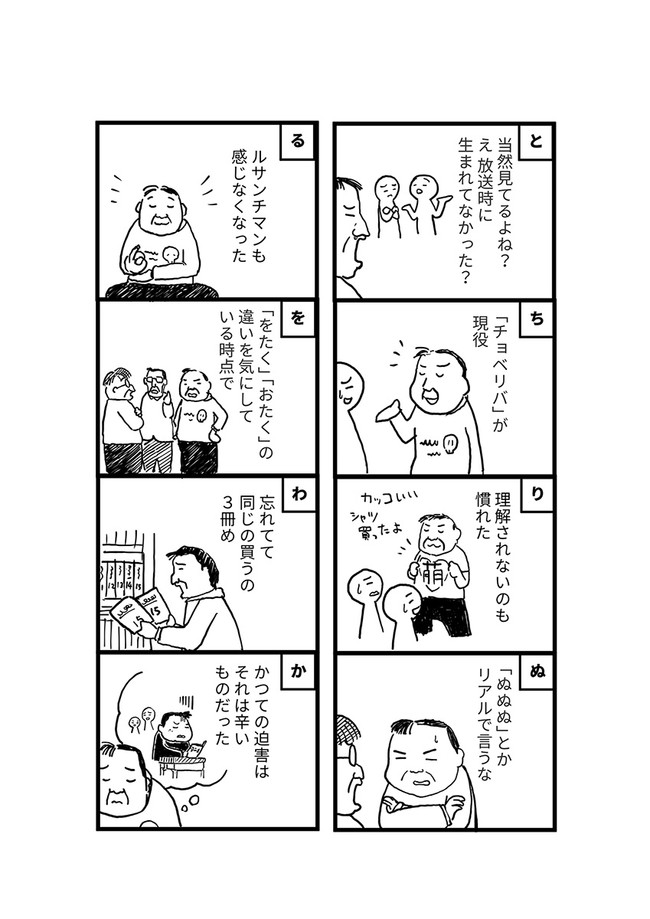 おたくら ~中老編~ 第25話 おたくら ~中老編~ 投稿者 admin - 3年 前に 幸せな読書漫画 おたくら ~中老編~ 第25話 , いいねと共有ボタンをクリックすることを忘れないでください. Manga おたくら ~中老編~ 常に更新されます 無料コミック Comic Top. 他のマンガの更新を読むことを忘れないでください。 マンガコレクションのリスト 無料コミック Comic Top マンガリストメニューにあります. お友達と共有しましょう! Facebook Twitter Pinterest Whatsapp 前のエピソード すべての章 次のエピソード リスト ページング Loading.. 前のエピソード すべての章 次のエピソード リスト ページング お友達と共有しましょう! Facebook Twitter Pinterest Whatsapp お気に入りに追加に続く 0 人 おたくら ~中老編~ 少年期も、青春時代も、社会人になってからも、ずーっとオタク。 オタクという言葉が生まれて幾星霜。オタクとはなんなのか。自認や他者評価の変遷あれど、好きなものは好きという姿勢と生き様に変わりなし。今日もオタクは、大好きなものを味わって、大好きと叫んでいます。 オタクという言葉がなかった時代からオタクのゴトウが送る、中老男性のリアル日常4コマ漫画。 ゴトウ(著者) 4コマアニメ化オタク声優