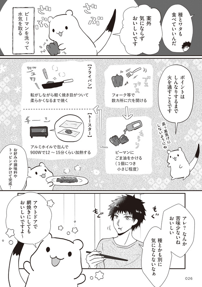 おこじょさんと家飲み家ご飯 “4話 素材のうまみ際立つ ピーマン焼き”