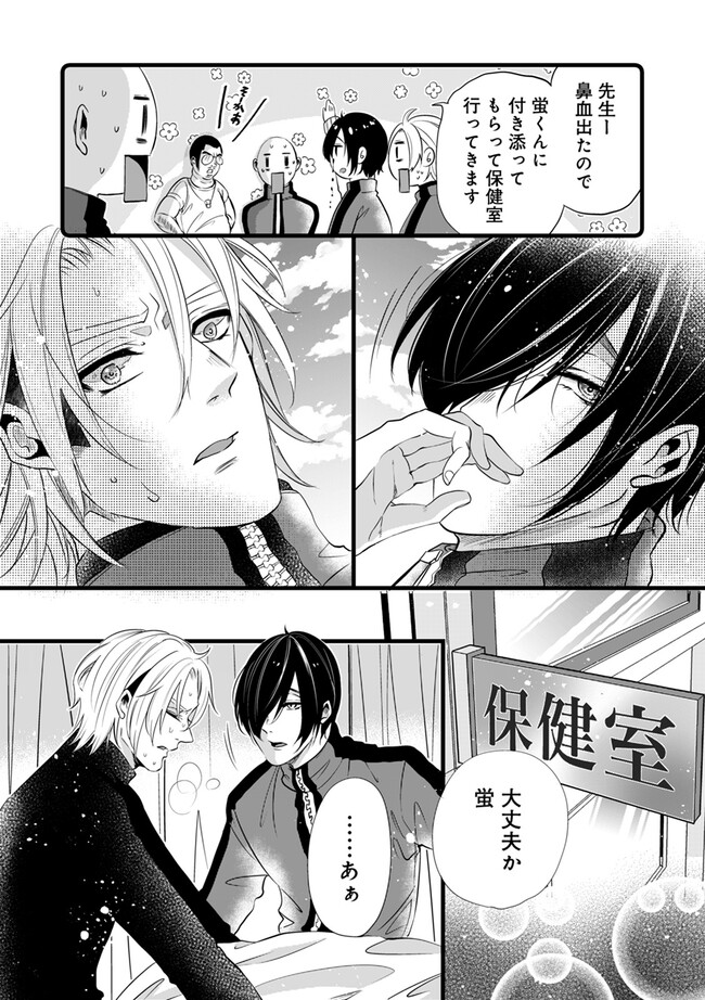 お隣で幼馴染の蛍と鷹夜。人気者で明るいリーダー的存在のヤンキー学生・蛍はα、地味で大人しい鷹夜はΩで、二人はいずれは結婚するものだと、本人たちや両親も含め、周りもそう思っていた。しかし、蛍にある日突然ヒートがきたことで、Ωであることがわかる。それと同時に、蛍のフェロモンに誘発されて鷹夜がαであることも判明する。ショックを受け、プライドが許さない蛍を、一生懸命励ます鷹夜だったが、思春期真っ只中の二人は、本能のままにHになだれ込み……。 筧伽藍堂の描く、本能に逆らえないΩバース!