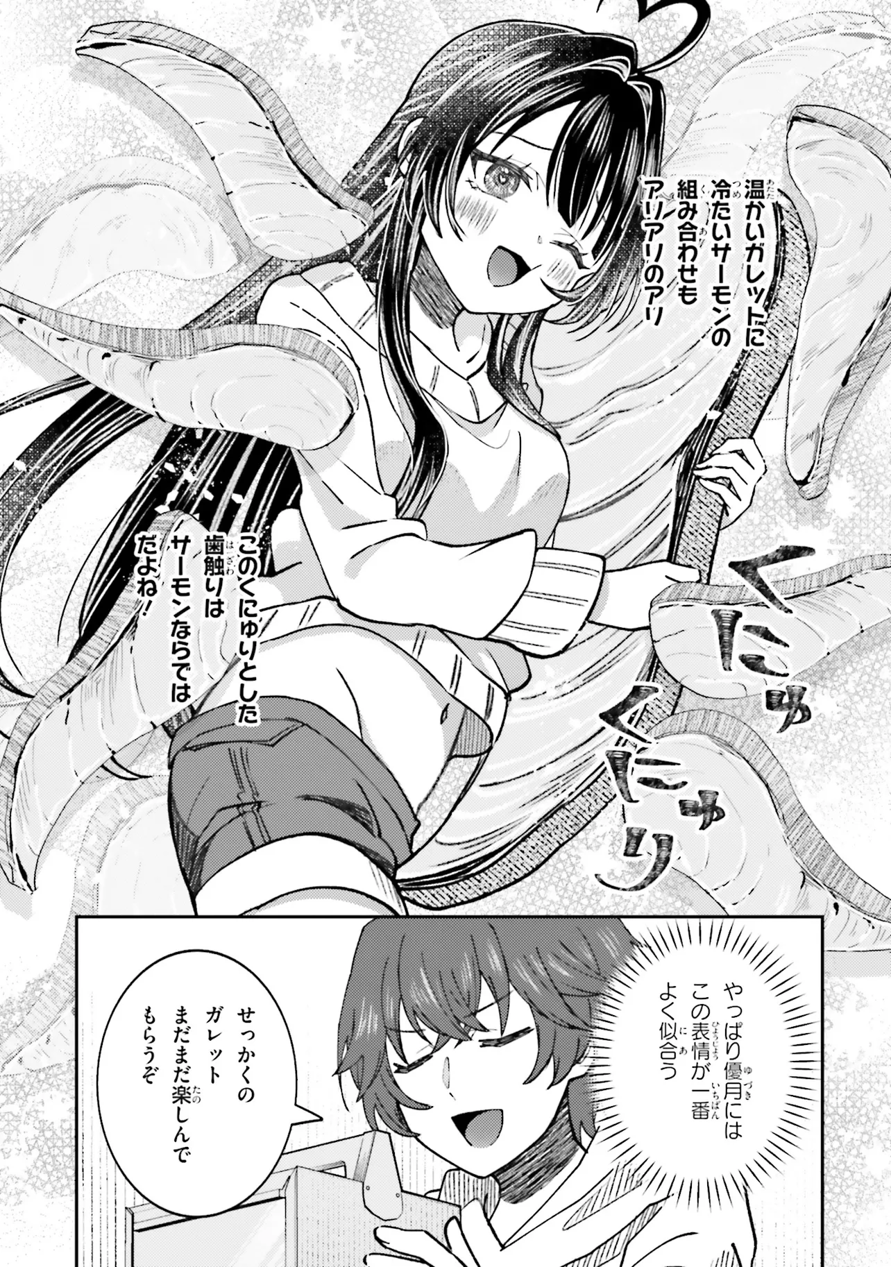 と幸せいっぱいの顔で完食! その食べっぷりに鈴文は、優月の大好物で誘惑して《メシ堕ち》させることを決意する。