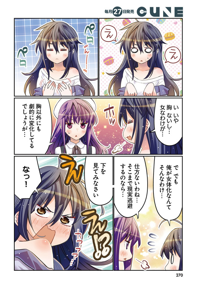 アイツ(男友達)が女体化したら「理想の彼女」だった!!? 子供のころに住んでいた街に10年ぶりに戻ってきた天野滉一は、 転校初日に幼馴染みの沢渡雪緒と再会の喜びを分かち合うも 突然雪緒が女体化してしまい戸惑いを隠せない。 雪緒は「突発性異性体変成症」という10万人にひとりの奇病で 突然女の子になってしまう体質だった――! 女体化した幼馴染み♂が可愛くてドギマギ!? 禁断のTSF(性転換)ラブコメ! 待望のコミックス1巻、9月27日(金)発売!