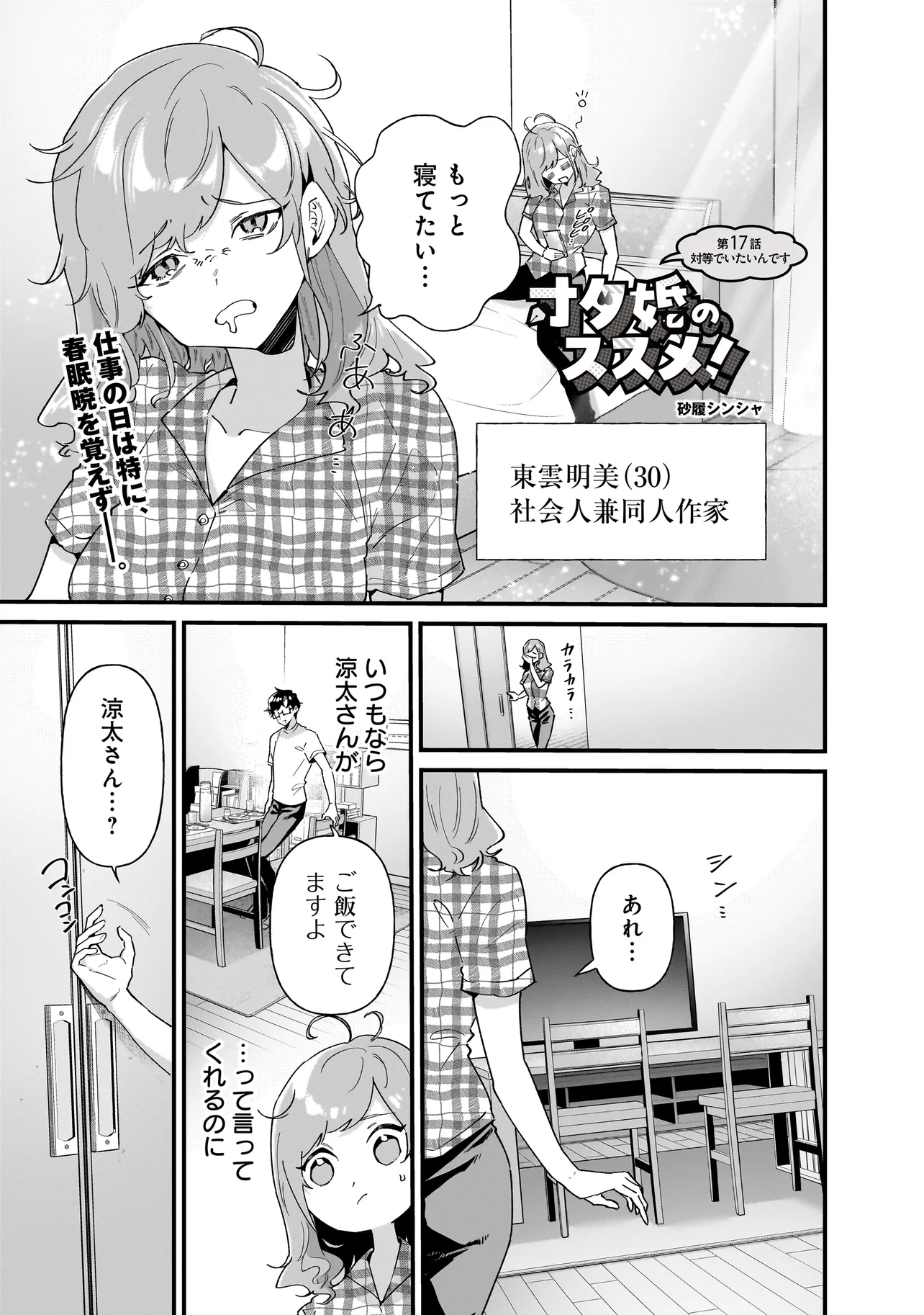 プロ漫画家を苦戦しながらも目指している東雲涼太は、「恋愛経験ないからラブコメの解像度が低いのだ」という周囲からのアドバイスに辟易していた。一方サラリーマンとの兼業で同人作家をしている小田明美は、家族からの結婚の圧力だけが悩みの種だった。そんなふたりが縁談で出会い、互いの利害の一致から交際0日で入籍を決意。オタクとしての自由な活動のための、偽装の夫婦生活が始まった――!!