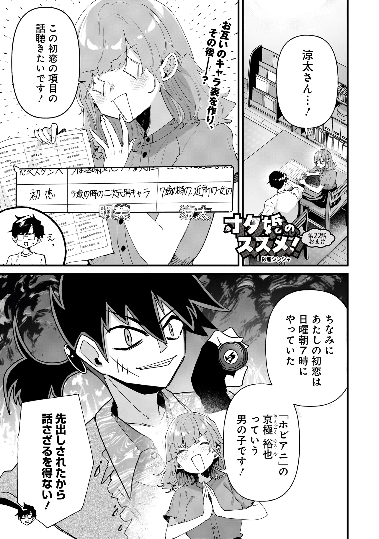 オタ婚のススメ! 第22話おまけ オタ婚のススメ! 投稿者 admin - 4か月 前に 幸せな読書漫画 オタ婚のススメ! 第22話おまけ , いいねと共有ボタンをクリックすることを忘れないでください. Manga オタ婚のススメ! 常に更新されます 無料コミック Comic Top. 他のマンガの更新を読むことを忘れないでください。 マンガコレクションのリスト 無料コミック Comic Top マンガリストメニューにあります. お友達と共有しましょう! Facebook Twitter Pinterest Whatsapp 前のエピソード すべての章 次のエピソード リスト ページング Loading.. 前のエピソード すべての章 次のエピソード リスト ページング お友達と共有しましょう! Facebook Twitter Pinterest Whatsapp お気に入りに追加に続く 0 人 オタ婚のススメ! プロ漫画家を苦戦しながらも目指している東雲涼太は、「恋愛経験ないからラブコメの解像度が低いのだ」という周囲からのアドバイスに辟易していた。一方サラリーマンとの兼業で同人作家をしている小田明美は、家族からの結婚の圧力だけが悩みの種だった。そんなふたりが縁談で出会い、互いの利害の一致から交際0日で入籍を決意。オタクとしての自由な活動のための、偽装の夫婦生活が始まった――!! 砂履シンシャ オタククセになるハッピーラブコメ同居夫婦家族推し活日常系笑える